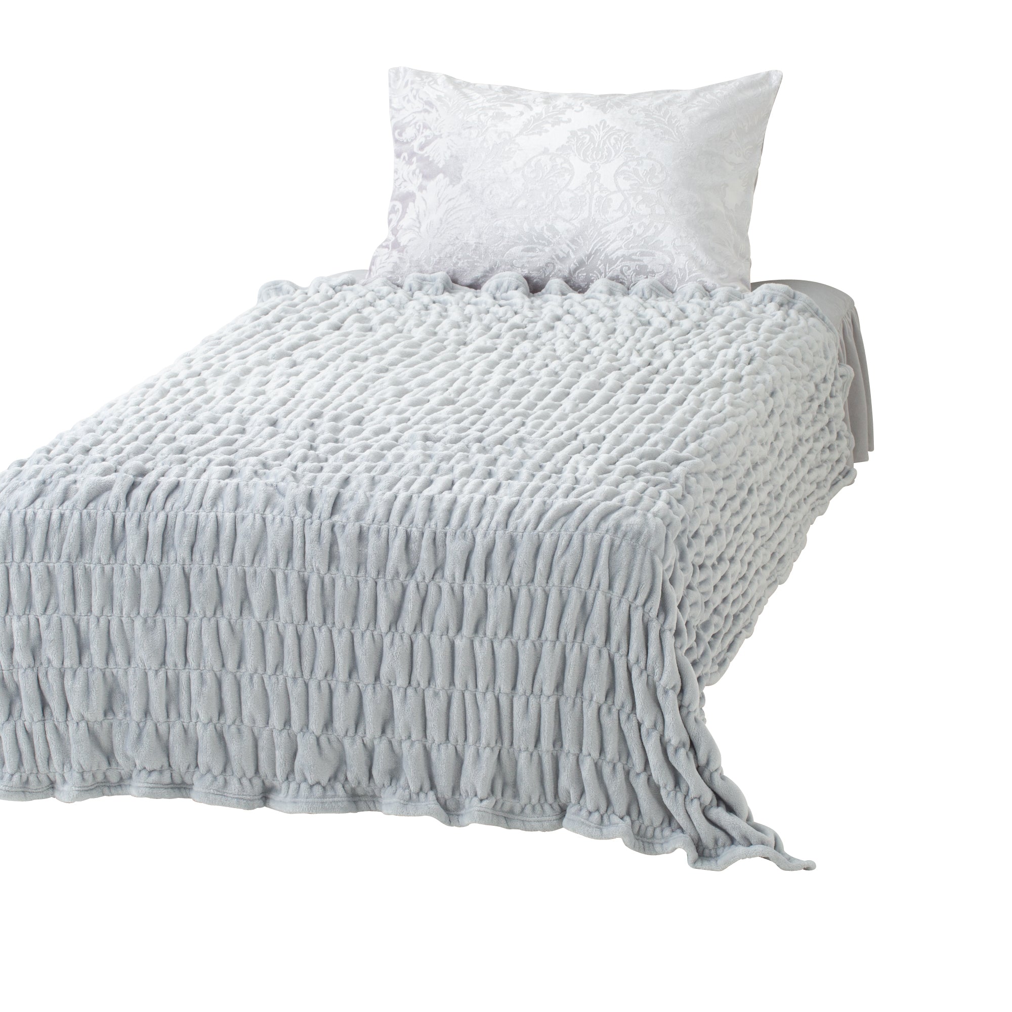 ぬくもりたっぷりのマイクロファイバー素材にくしゅくしゅっとしたテクスチャーを加えた可愛らしいブランケット(毛布)です。 立体感のあるデザインがベッドルームのアクセントになります。 冬のあったか寝具と合わせてナチュラルテイストのコーディネートをお楽しみください。