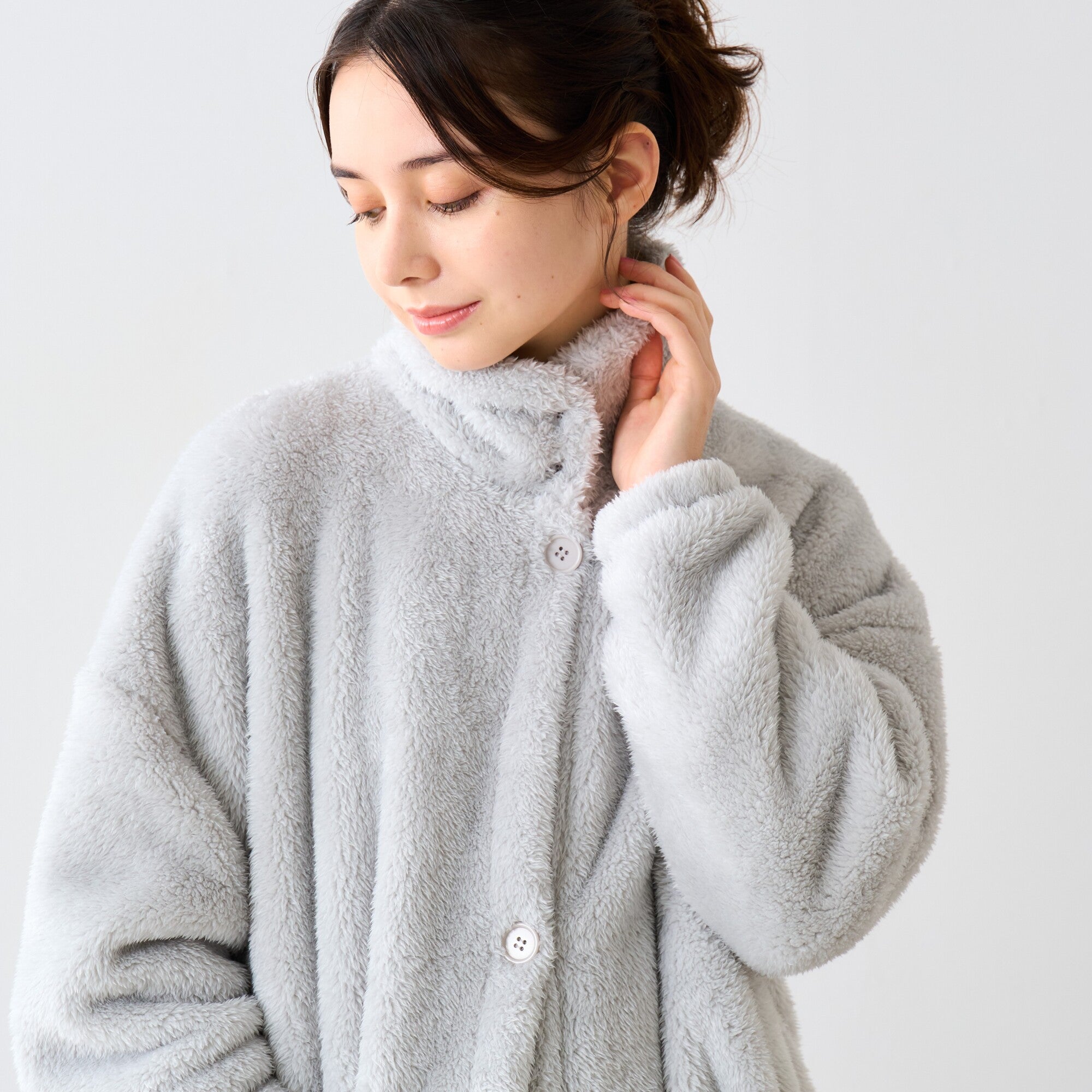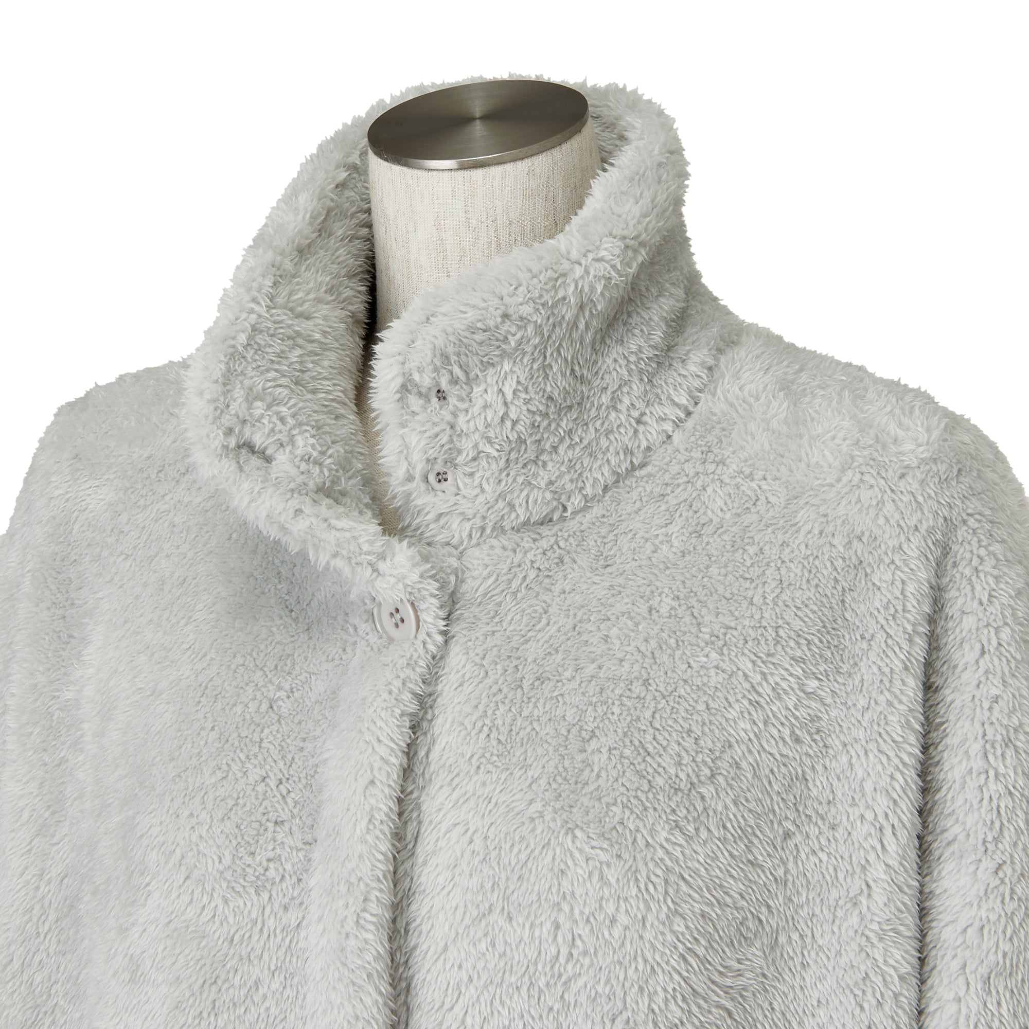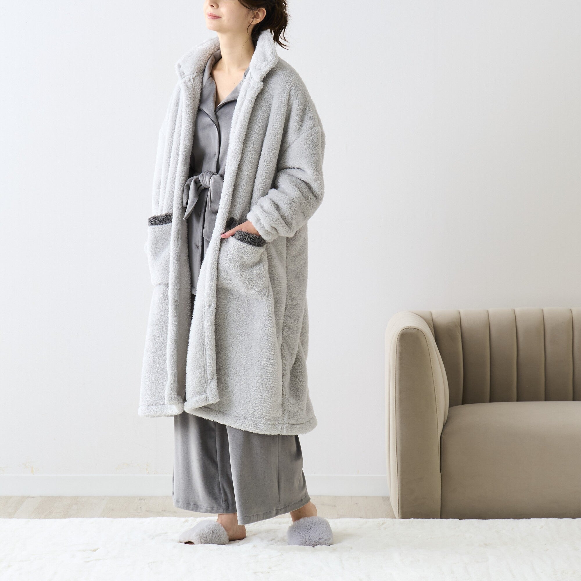 柔らかく保温性の高いフリース素材のブランケットローブです。 毛足が長く、ふわふわで柔らかな肌触りが気持ちよく、起毛部分へ空気を溜め込むことにより熱を保持してくれるため、暖かく過ごせます。 着丈105cmで動きやすくあったか。袖が二重構造になっており、冷気が入りにくいのも嬉しいポイントです。 使わない時は背中内側のポケットに収納するとクッションになるので置き場所に困らず便利です。 洗濯可能でシワにもなりにくいです。 また軽い生地のため、長時間着ていても疲れにくいのでおうち時間に最適です。 冬場のちょっとしたギフトにもおすすめです。 ※静電気防止加工付き。