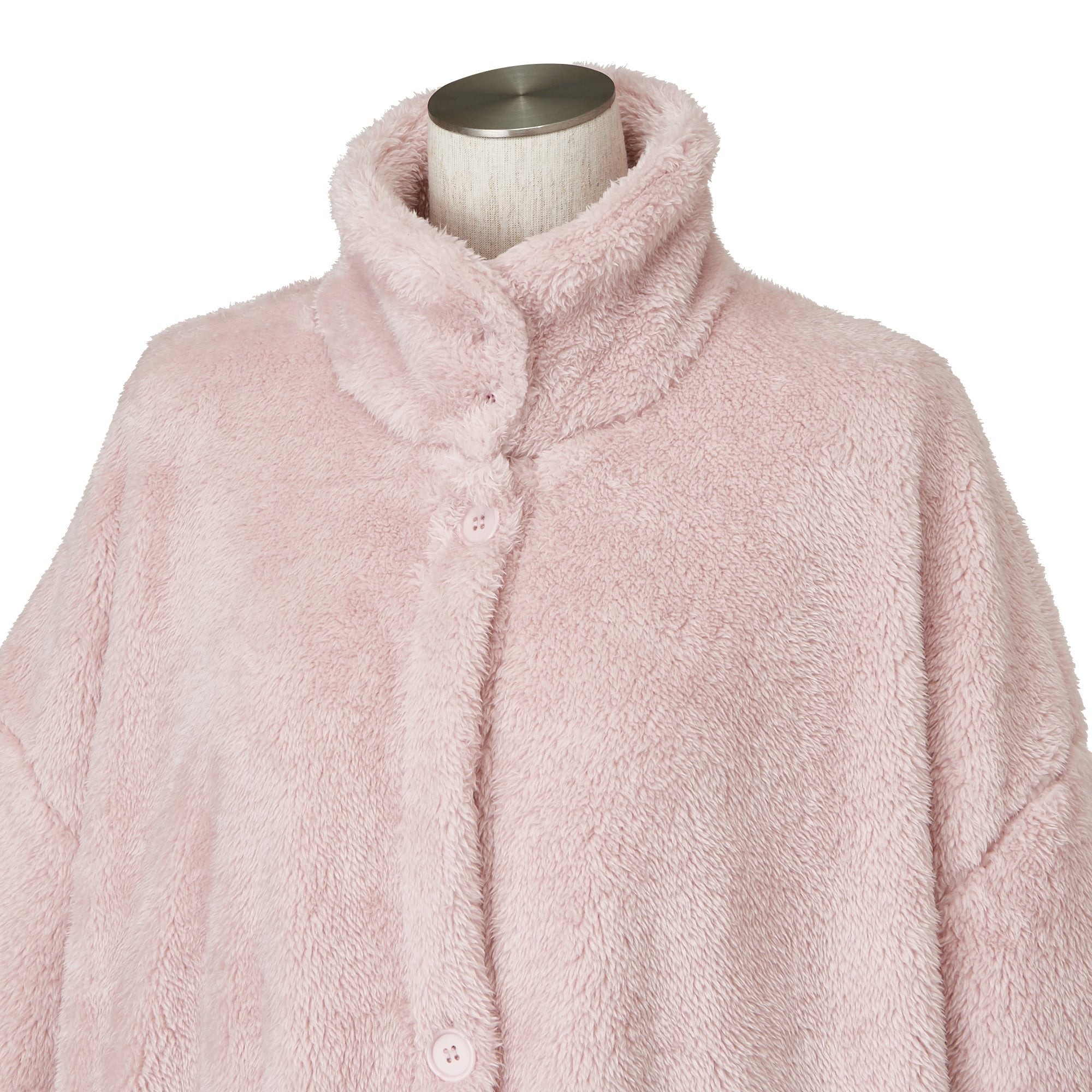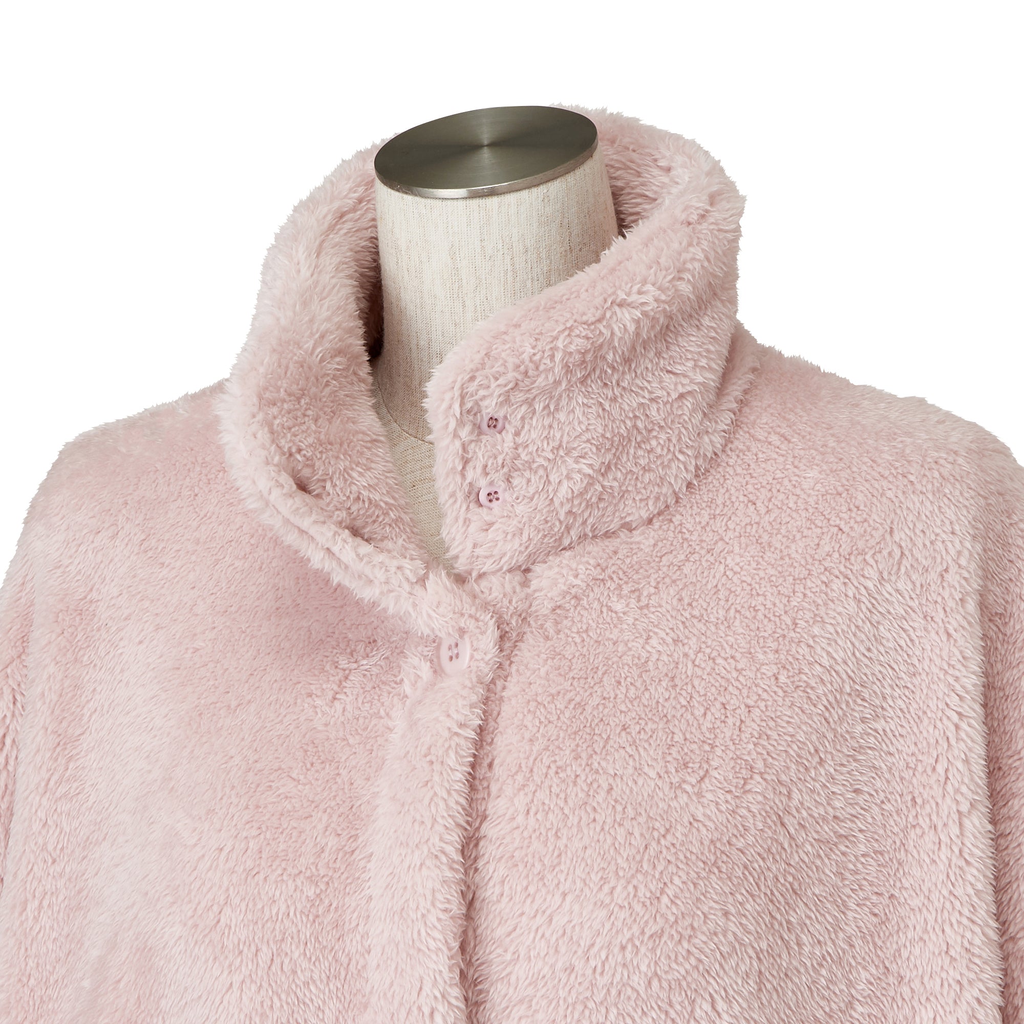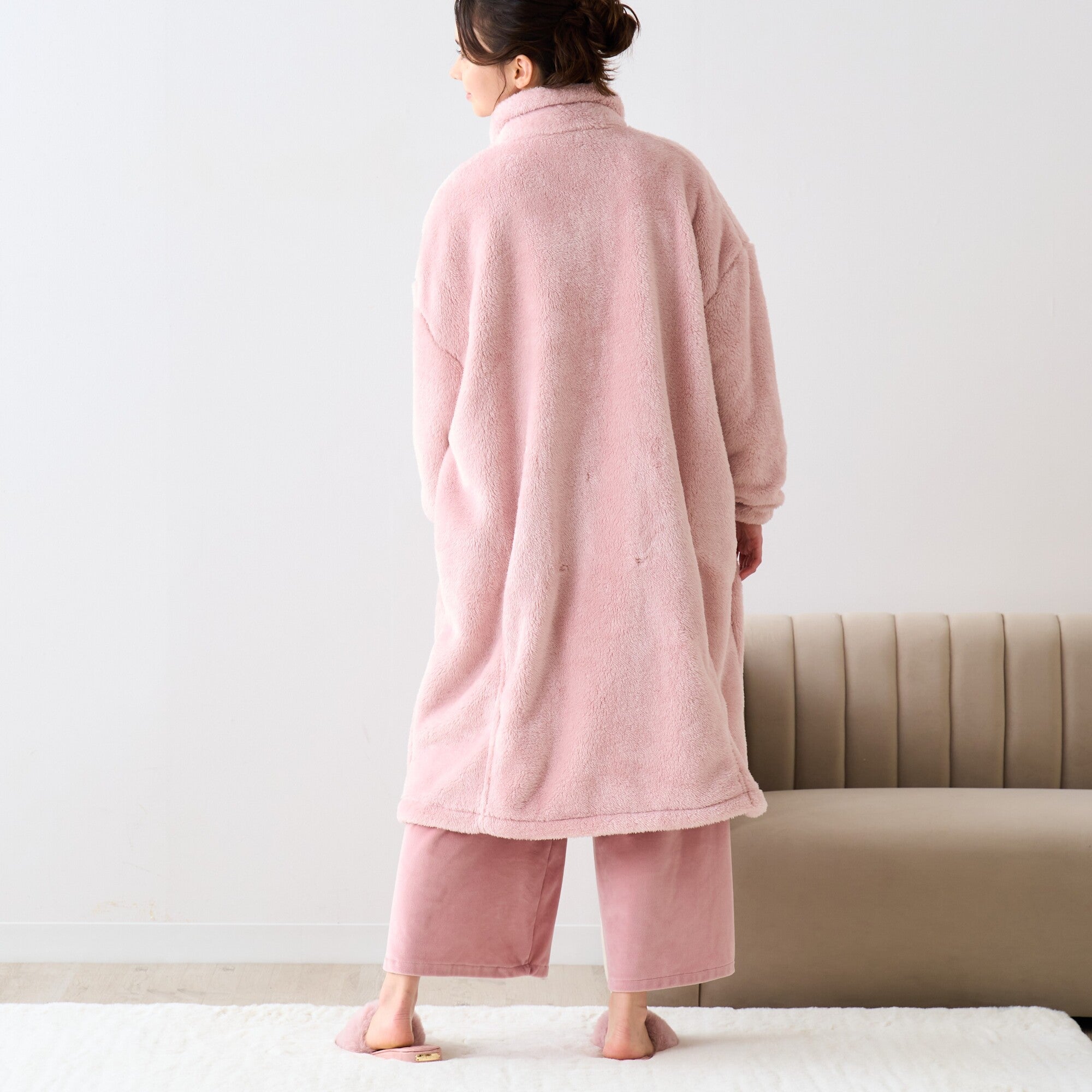 柔らかく保温性の高いフリース素材のブランケットローブです。 毛足が長く、ふわふわで柔らかな肌触りが気持ちよく、起毛部分へ空気を溜め込むことにより熱を保持してくれるため、暖かく過ごせます。 着丈105cmで動きやすくあったか。袖が二重構造になっており、冷気が入りにくいのも嬉しいポイントです。 使わない時は背中内側のポケットに収納するとクッションになるので置き場所に困らず便利です。 洗濯可能でシワにもなりにくいです。 また軽い生地のため、長時間着ていても疲れにくいのでおうち時間に最適です。 冬場のちょっとしたギフトにもおすすめです。 ※静電気防止加工付き。
