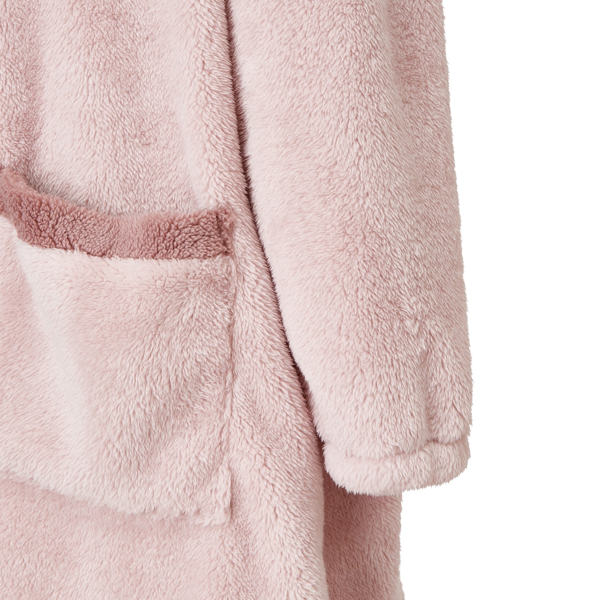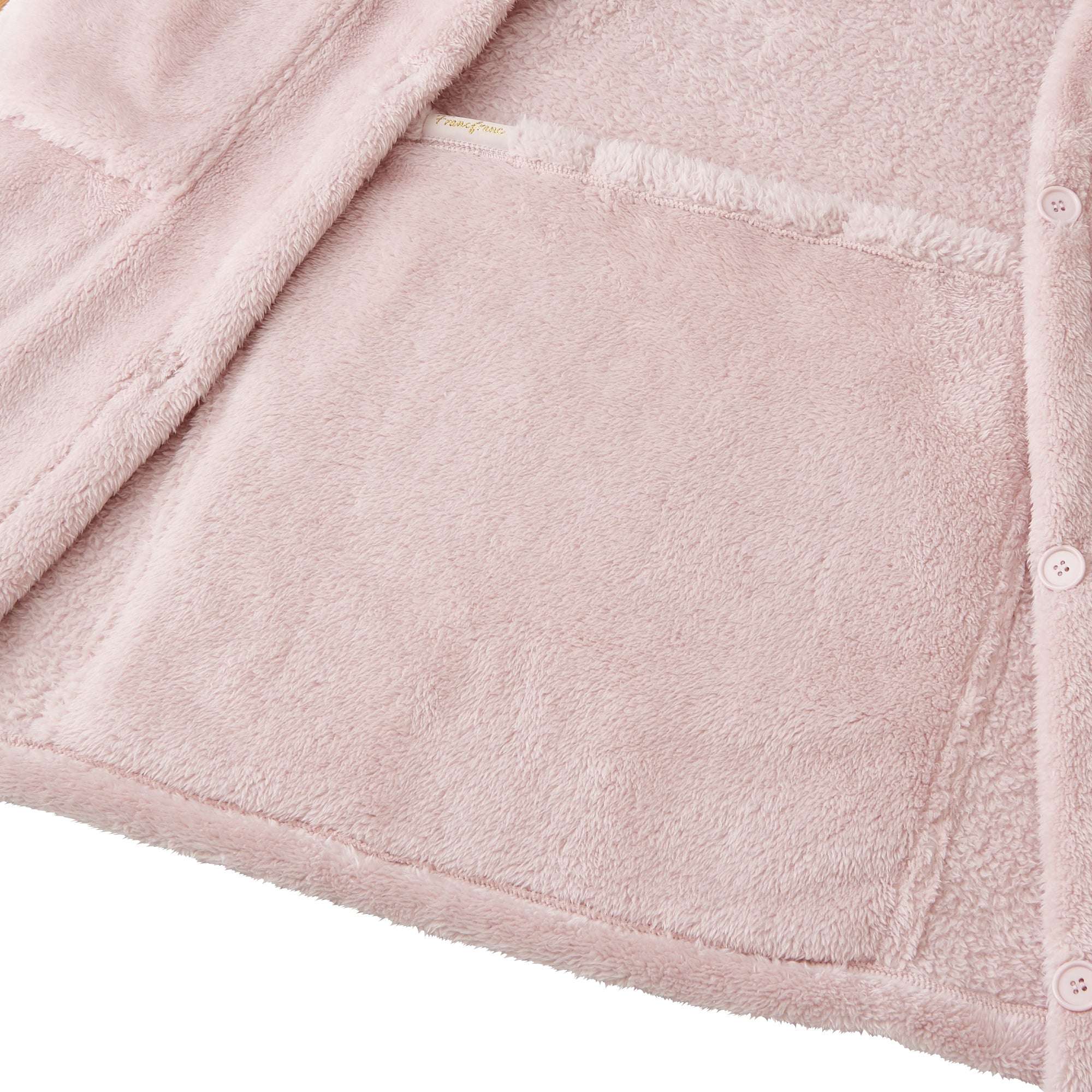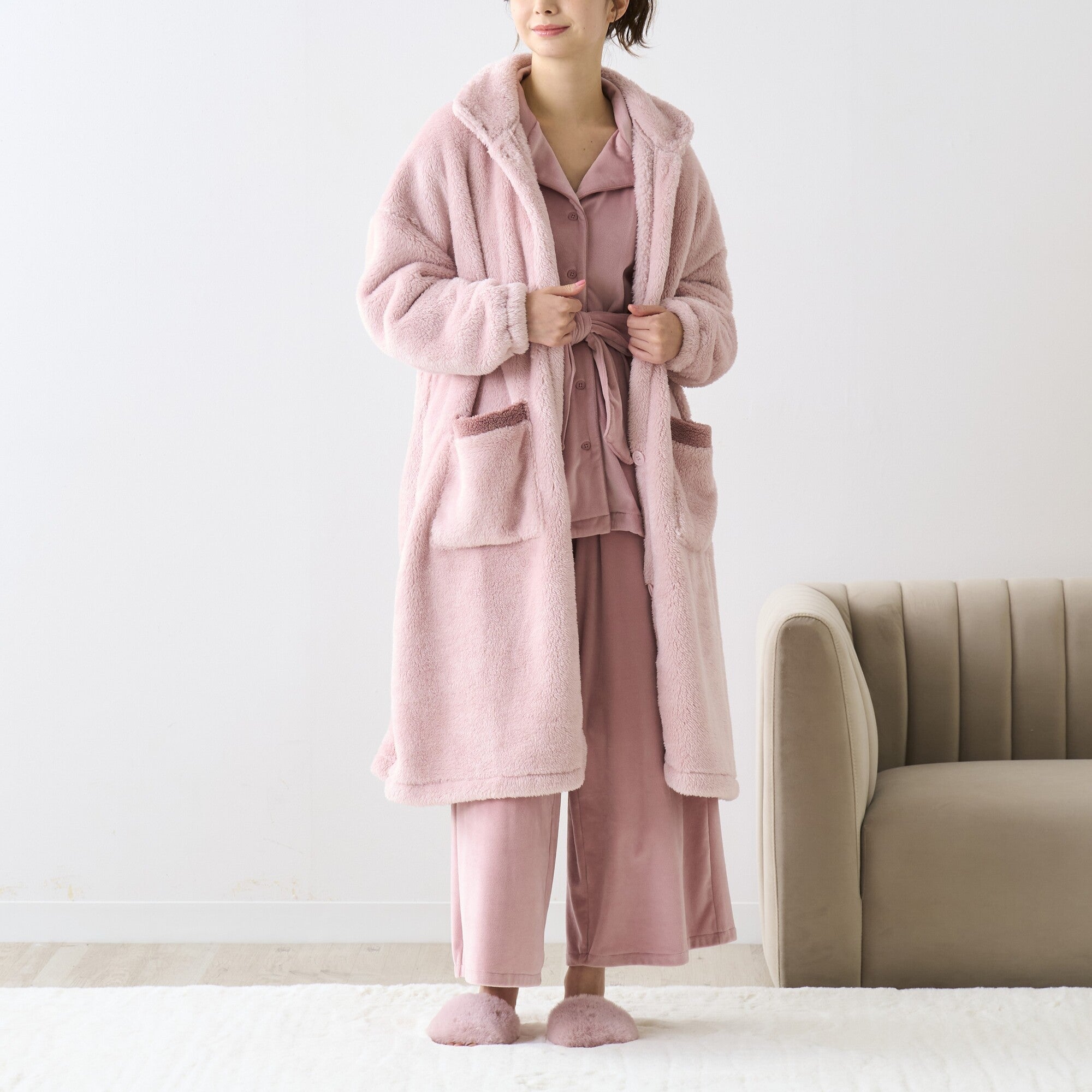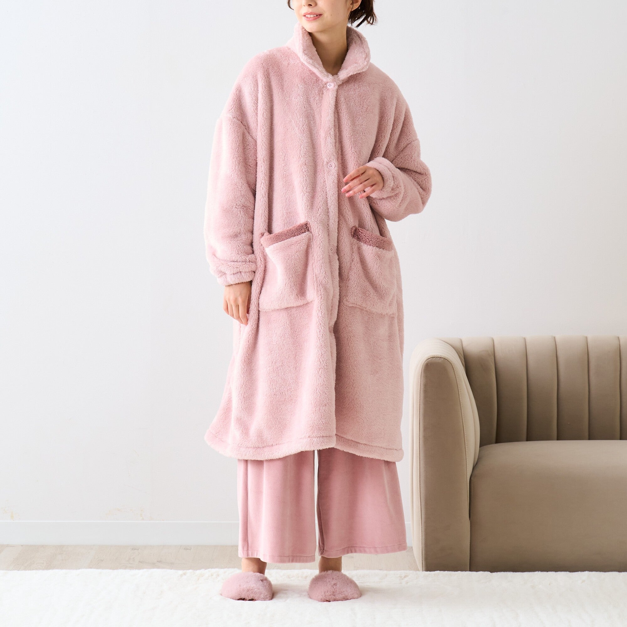 柔らかく保温性の高いフリース素材のブランケットローブです。 毛足が長く、ふわふわで柔らかな肌触りが気持ちよく、起毛部分へ空気を溜め込むことにより熱を保持してくれるため、暖かく過ごせます。 着丈105cmで動きやすくあったか。袖が二重構造になっており、冷気が入りにくいのも嬉しいポイントです。 使わない時は背中内側のポケットに収納するとクッションになるので置き場所に困らず便利です。 洗濯可能でシワにもなりにくいです。 また軽い生地のため、長時間着ていても疲れにくいのでおうち時間に最適です。 冬場のちょっとしたギフトにもおすすめです。 ※静電気防止加工付き。