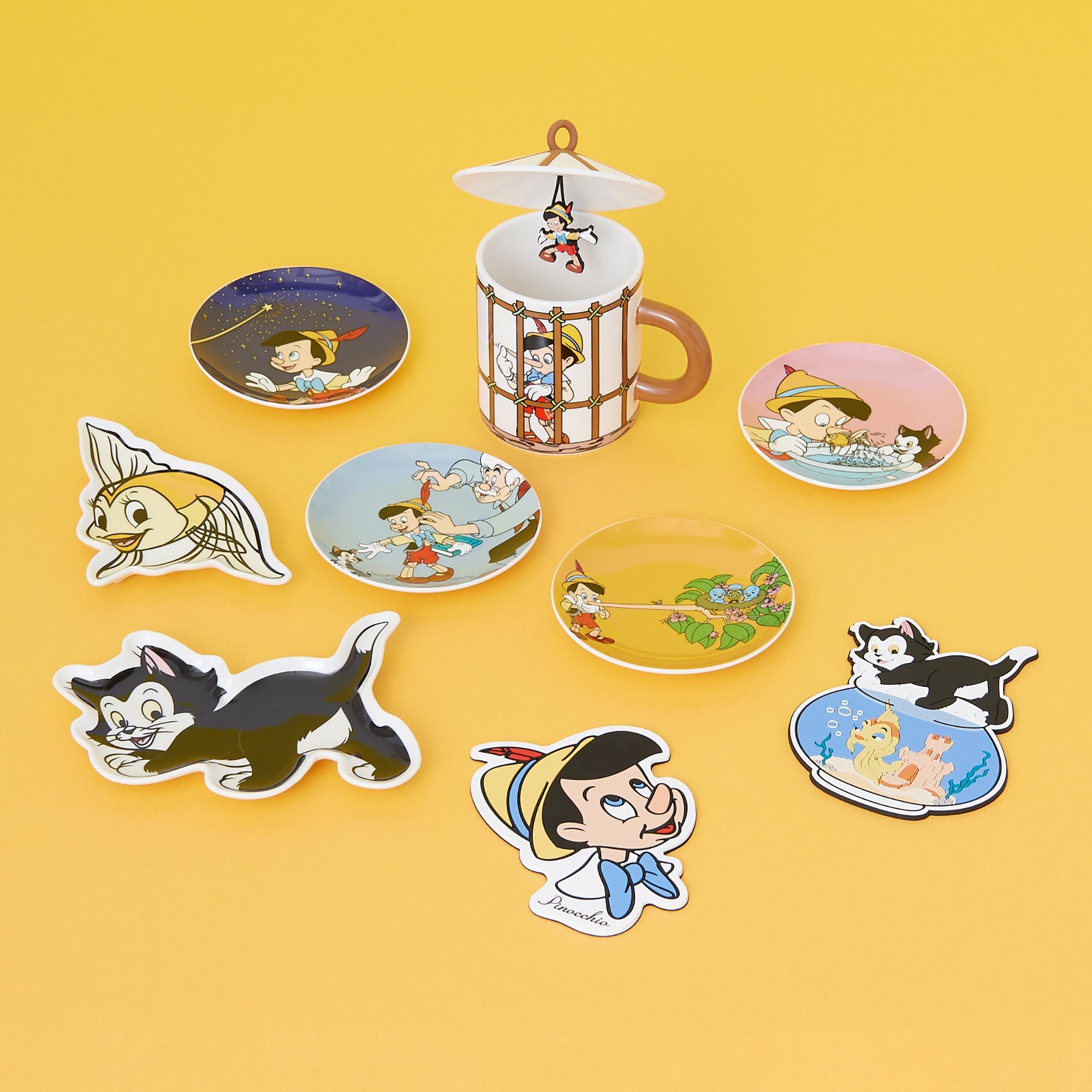 ピノキオの物語のシーンを生き生きと描いたデザインのラウンドミニプレートです。豆皿としても、アクセサリートレイとしてもお使いいただけます。かわいいピノキオにじんわり癒されます。