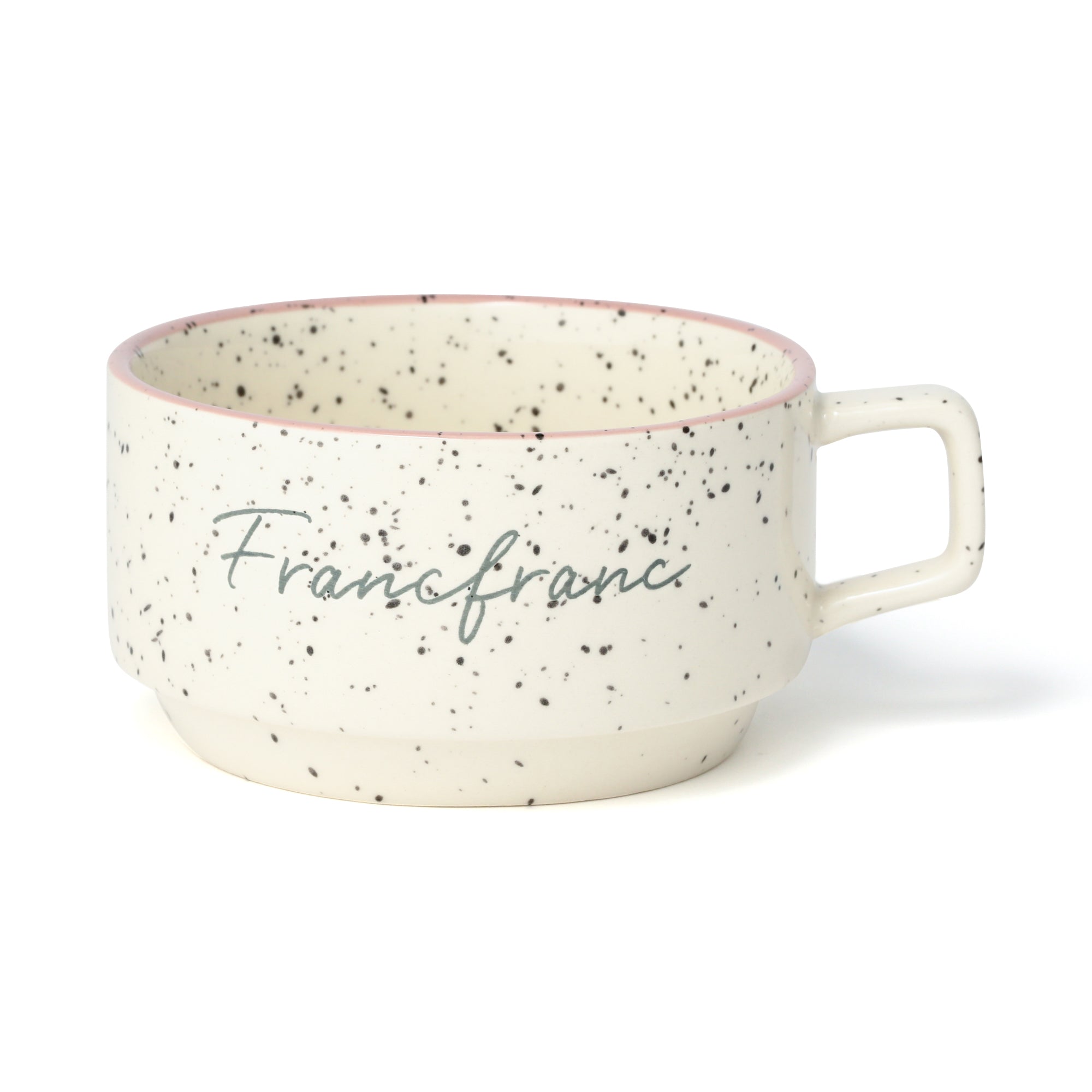 Franfrancのロゴが程よいアクセントになったトレンド感のある柄のスープカップです。スタッキング可能で収納にも便利です。オーブンに対応しているのでグラタン皿としても活躍します。