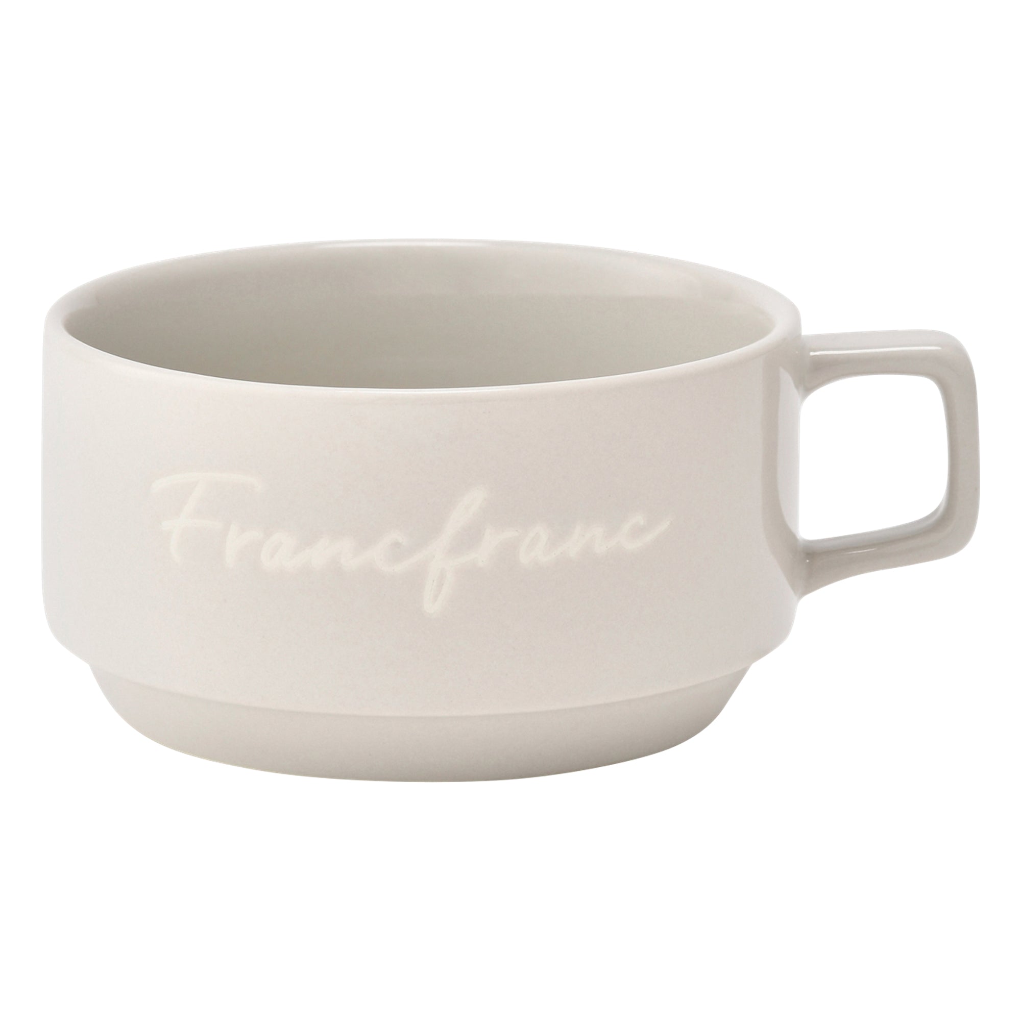 Franfrancの白抜きロゴがかわいい綺麗なカラーのスープカップです。色違いで集めたくなる綺麗なカラーを揃えました。気分やその日の食卓の雰囲気によってカラーを選ぶことができます。グレーカラーは、シンプルなので男女兼用として使用しやすいです。電子レンジも使用できるので、スープが冷めてしまったらそのまま温め直しができます。食器洗浄機も対応で気軽に使えて便利です。毎日の食卓を華やかになります。容量は360mlと大きめなので、スープをたっぷり入れることができます。素材はストーンウェアを使用しているので、耐熱性がありオーブン可なのでグラタン皿としてもお使いいただけます。また耐水性があるので汚れがつきにくく、食材の匂いもつきにくいのです。適度に丸みを帯びた形もとっても持ちやすく、ぬくもりを感じる落ち着いた質感と丈夫さも魅力です。取っ手がついているので持ちやすいです。使い心地が抜群で、毎日食卓に並べたくなります。スタッキング可能で収納にも便利です。淡い色合いで、並べてあるだけでも可愛いです。