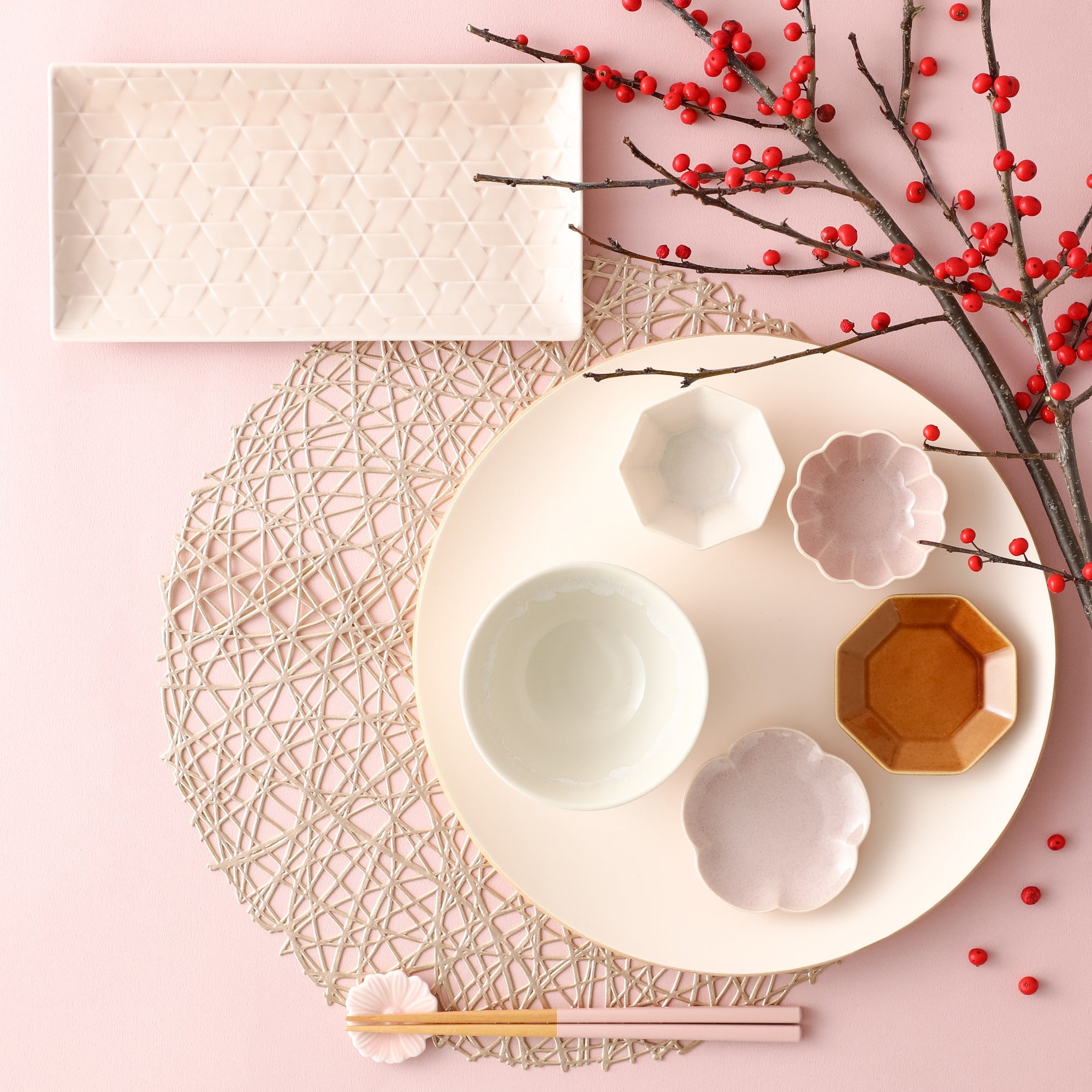 美濃焼 豆皿 梅 ピンク
