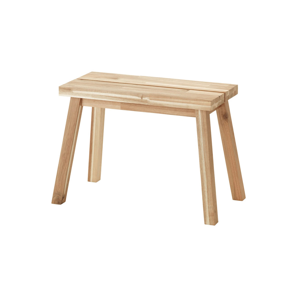 無垢材製のシンプルなベンチです。耐久性のある天然素材で、必要に応じてやすりをかけ、表面処理を施すことができます。