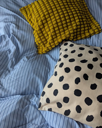 オフホワイトのとても柔らかなクッションカバーです。立体的な模様が、ベース生地とパイル部分の色のトーンの違いを引き立てます。豊富なカラーバリエーションからお気に入りを選んだり、またはいくつか組み合わせることもおすすめです。