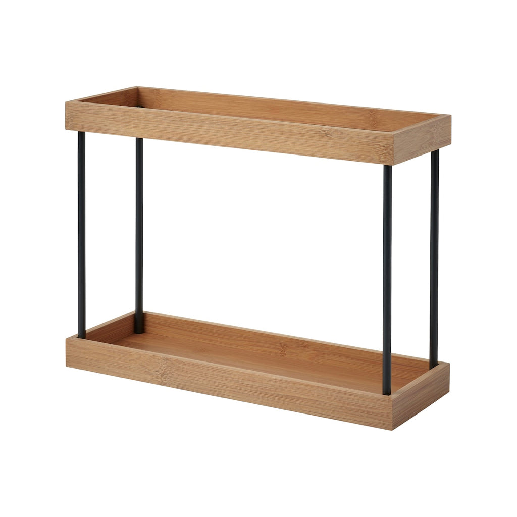 複数段の竹製キッチン収納です。お手入れの簡単な耐摩耗性に優れた天然素材で、キッチンにぬくもりと活気を演出します。ワークトップをすっきりと整理してスタイリッシュに保つのに役立ちます。このオーガナイザーは、ふた付き容器やスパイスミル、ボトルの定位置をつくれるので、必要なものをいつでもすぐに見つけられます。