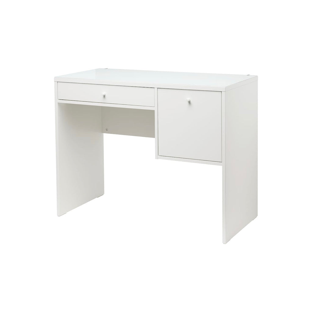 幅の広いフェルト敷きの引き出しにメイク用品やアクセサリーをたっぷり収納できるドレッサーです。引き出しはソフトクロージング機能を内蔵しているので、ゆっくり静かに閉まります。動きがスムーズな引き出しには、抜け落ち防止のストッパーが付いています。汚れを気にする必要はありません。耐久性に優れたガラス製天板は、拭くだけできれいになります。