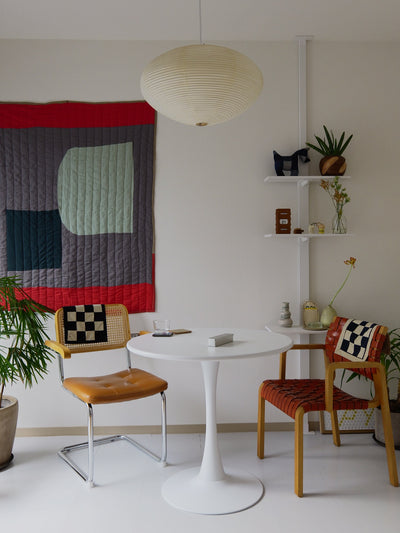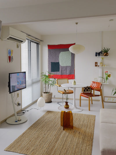 まわりに座る人全員の顔がよく見える円形のテーブルです。おしゃべりを楽しむのに最適な形で、デザインもおしゃれです。