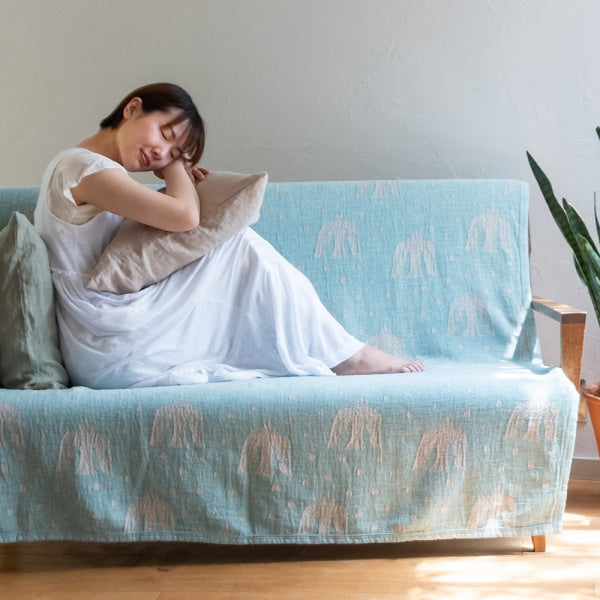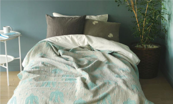 リネンとシュニールコットンを掛け合わせた画期的な組み合わせのサマーブランケット。2つの素材のいいとこどりが実現できた新定番です。リネンは肌ざわりがサラッとして爽やかな清涼感があり、吸水性・吸湿性・発散性にすぐれているので、汗をたくさんかく夏にはぴったり!涼しい日にはシュニールコットン面を肌に触れる側に使えば、極上な肌ざわりが快適な眠りに誘います。夏用のソファカバーとしてもべたつきを気にすることなくお使いいただけます。皆川 明さんデザインの「Birds in the snow」は大空を飛ぶ鳥たちと雪が描かれており、より一層日本の夏の寝苦しさから解放してくれることでしょう。シングルサイズはソファカバーや大人用寝具として、ぴったりです。※クリッパン(KLIPPAN)のシュニールコットン糸、コットン糸はGOTS オーガニック認証を受けています。