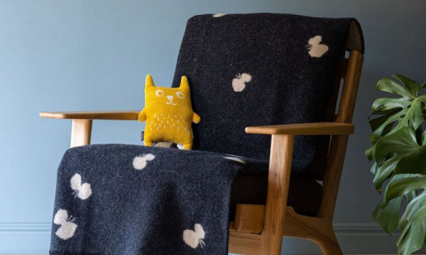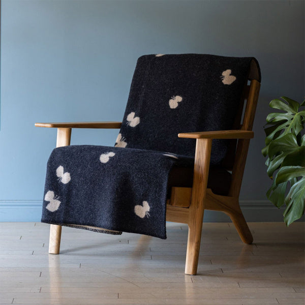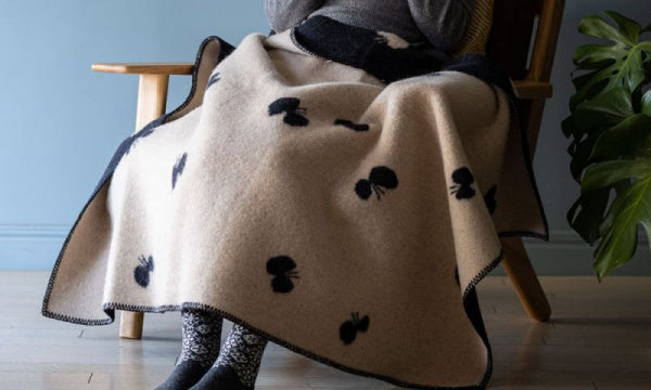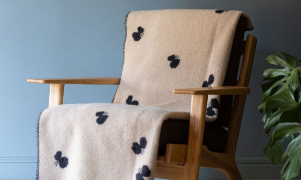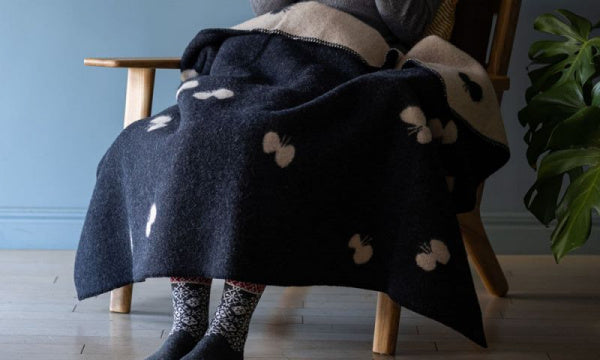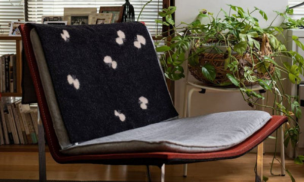クリッパン(KLIPPAN)×ミナペルホネンのコラボレーションブランケットの定番デザインCHOUCHO。ラウンジチェアに掛けたり、足下が冷えてきたらひざかけとしても最適なサイズです。ラムウールとは生後6~7ヶ月の子羊から初めて刈り取った羊毛です。繊維が細くて柔らかく、肌触りも優しく、クリンプ(巻き毛)が多いので、空気をたっぷり含んで温かいのが特徴。ラムウールは全てニュージーランドの羊を使用。身体への殺虫剤や抗生物質を含む飼料を使用せずに、最適な環境で育った羊からとれるラムウールは厚みがあり、白さが際立っています。羊の生育に優しいだけではなく、生産者の健康にも配慮しています。※水洗い不可