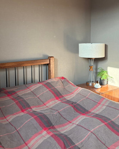60年代のヴィンテージランプがモチーフになったテーブルランプ。シェードはネップ感のあるファブリック製。柔らかく味わいのある光が広がります。コードはレトロなツイストコードを使用。ソケットに2段階の調光スイッチが付いています。