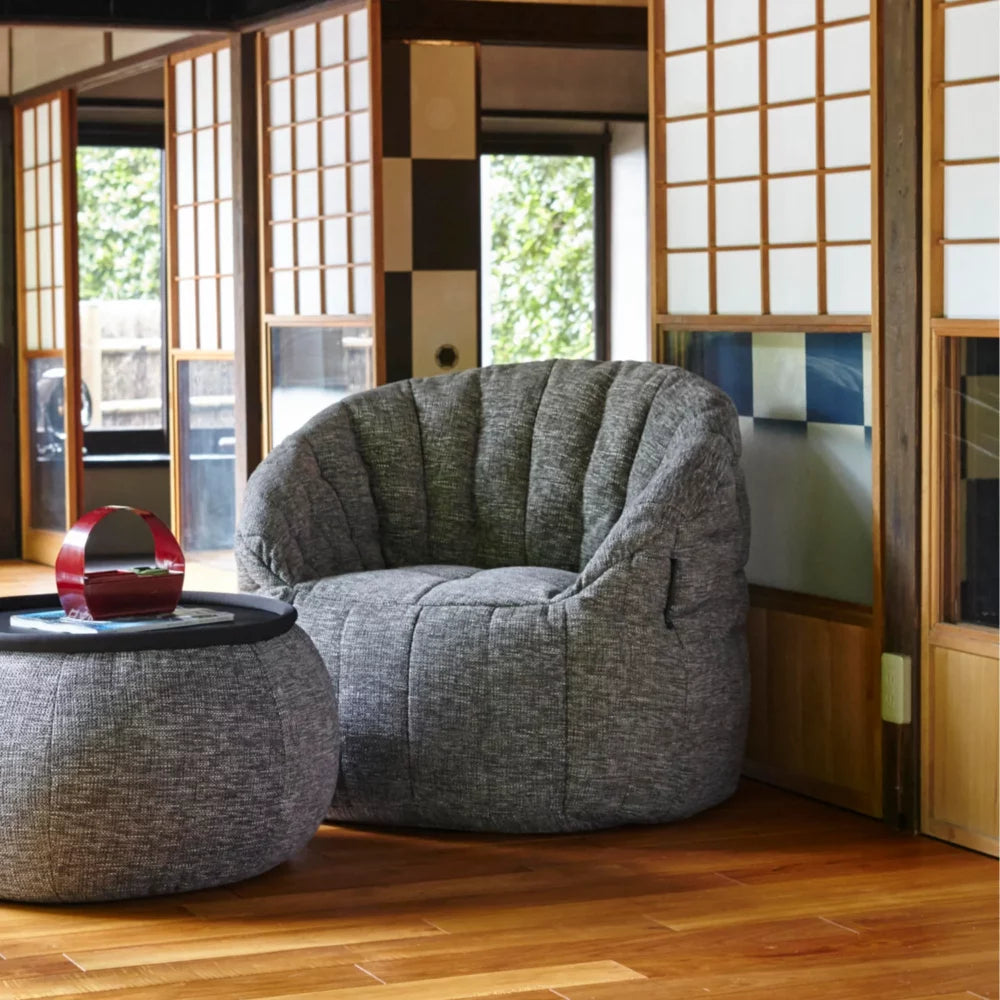 まるでちゃぶ台のようなキュートな円形テーブルです。スタイリッシュでモダンテイストなヴァーサテーブルは部屋を選ばず、どんなインテリアやソファにも合わせて使えます。プレミアムビーズがたっぷり詰まっているので、テーブルとしても安定感抜群です。天板を取り外せば、オットマンとして脚置きや腰かけとしても利用でき、1台2役をこなす優れものです。