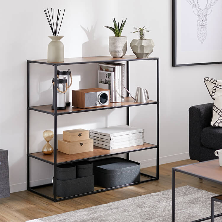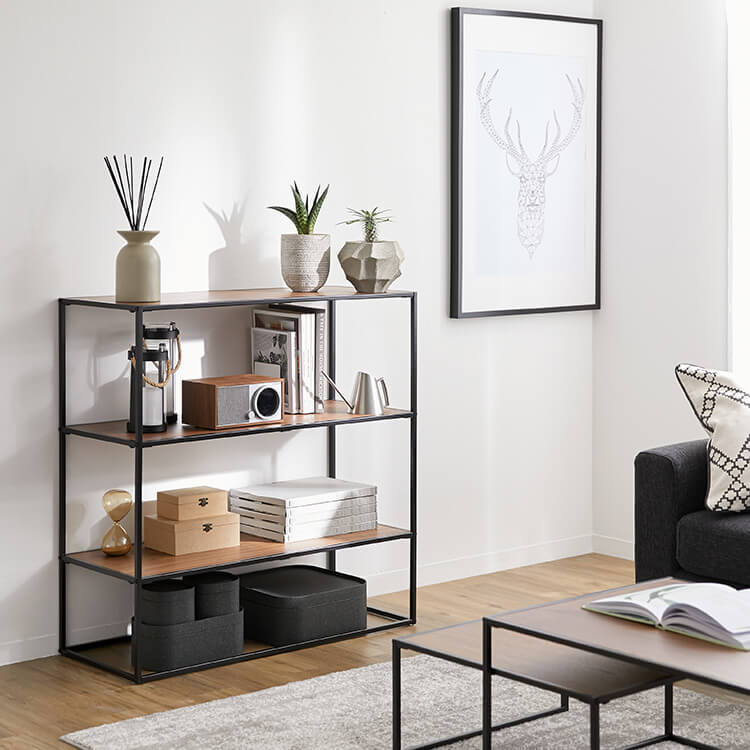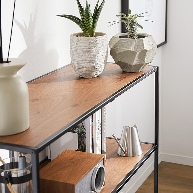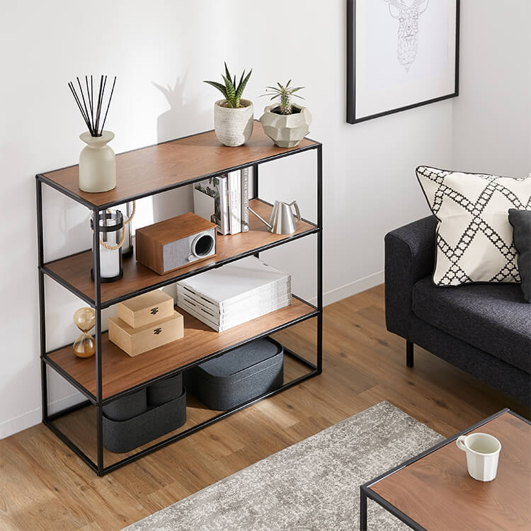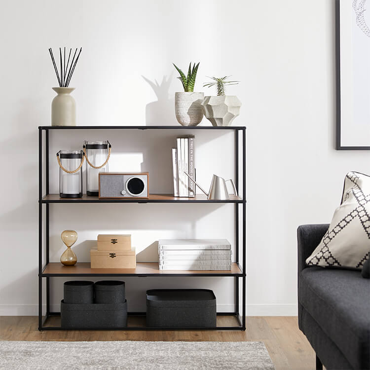 置くだけでオシャレに映える、スタイリッシュな細脚と美しい木目の2トーンラック。無駄のないシンプルなデザインに、ぬくもりを感じる天然木を合わせることで、ナチュラルなお部屋にもスッと溶け込むのがポイントです。「生活感をあえて魅せる」スマートでオシャレな整理整頓しませんか?シンプルでスタイリッシュなデザインはどんなお部屋にもスッと馴染み、モダンな印象をプラスしてくれます。置くだけで雑誌から抜き出したような憧れのインテリアに。スタイリッシュな細脚は圧迫感が少なく、お部屋を広く見せてくれ、一人暮らしやワンルームの狭い空間でも、おしゃれな空間へと導いてくれます。世界三大銘木として知られるウォルナット。美しい木目と深みのある風合いは、高級家具や建築などにも使用されます。柔らかくなめらかな質感と耐久性を兼ね備えた、魅力ある素材です。