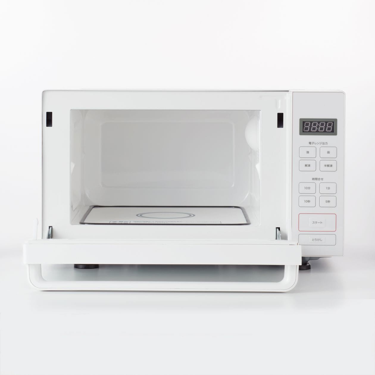 庫内がフラットタイプの電子レンジです。回転皿を取り除くことで内部の容量を確保して、食材を入れやすく、お手入れもしやすくなっています。あたためと解凍に特化した単機能です。