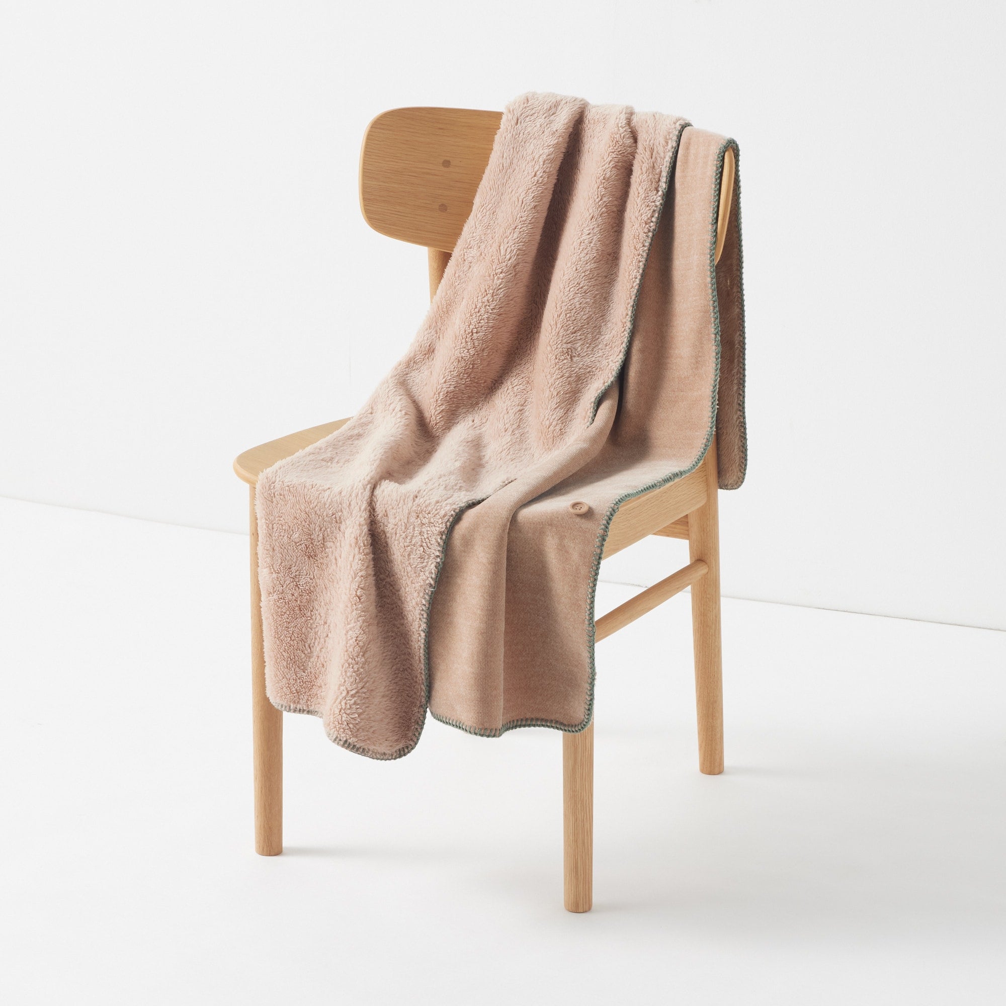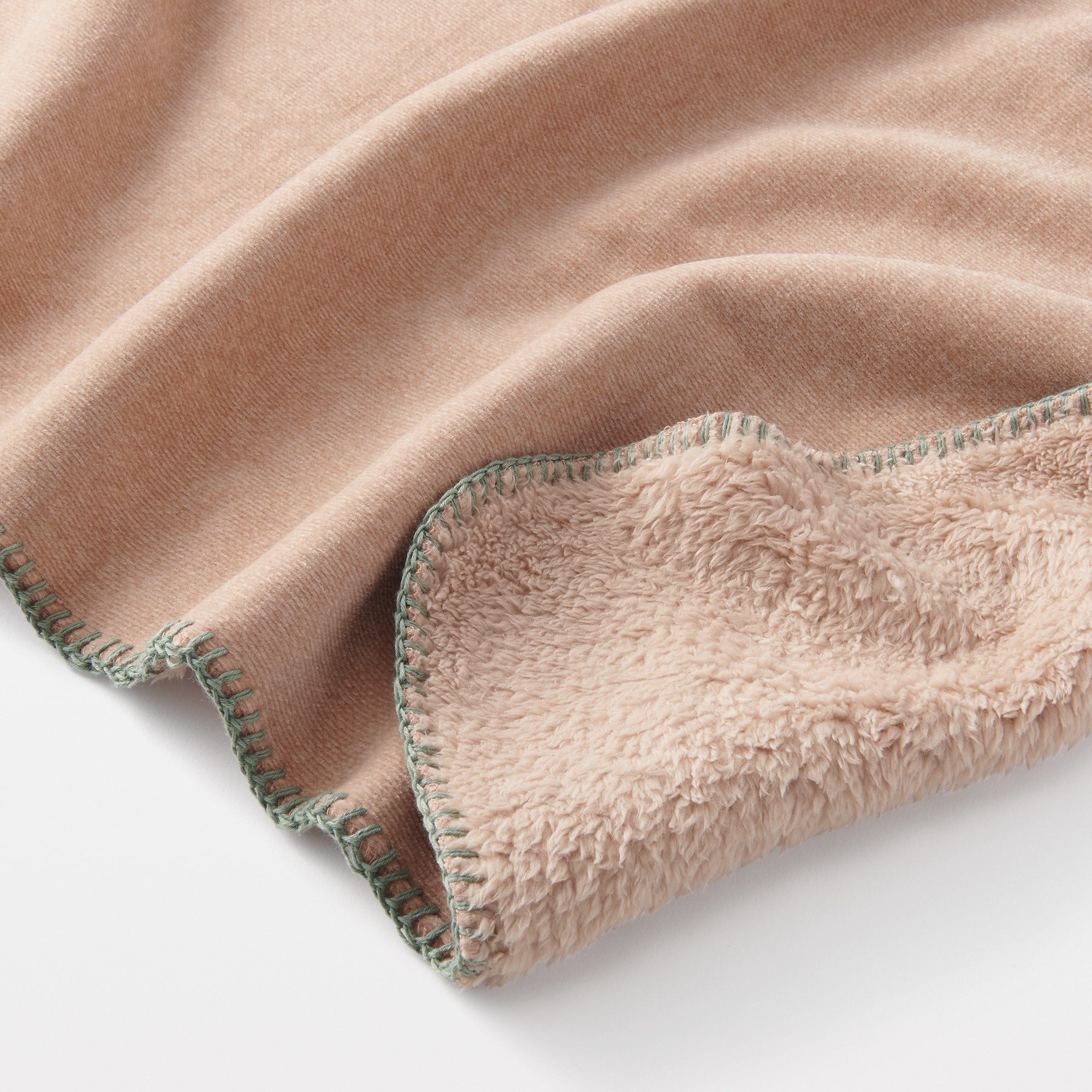 裏表で違う肌触りなので、気分や好みによって肌にあたる面を変えられるブランケットです。洗濯ネットを使用し、洗濯機でお手入れできます。