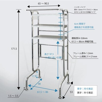 伸縮ランドリーラック 3段(WH)