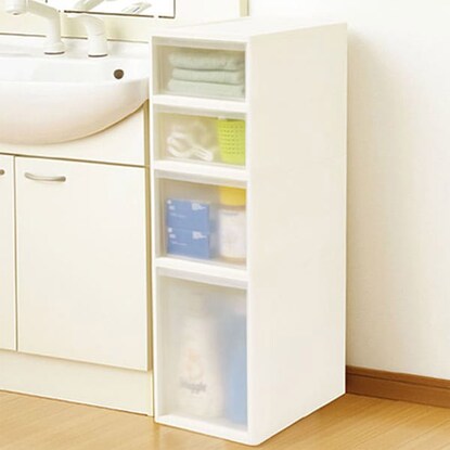 最下段引出しは柔軟剤ボトル(約600ml)約10本収納可能