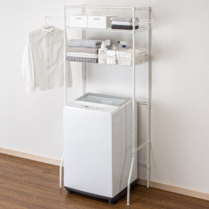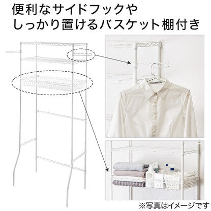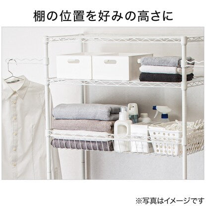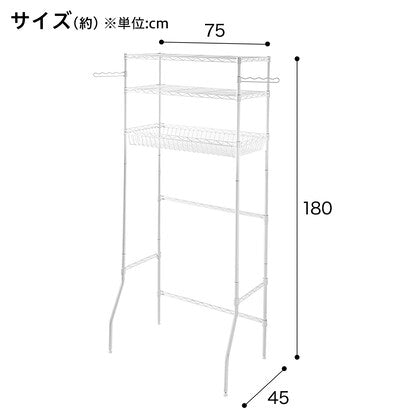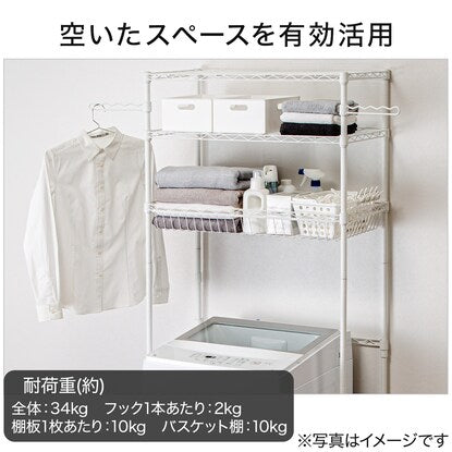 空いたスペースを有効活用できる 棚の位置をお好みの高さに設置できる 便利なサイドフックやしっかり置けるバスケット棚付き 【お客様組立品】 組立目安(2人以上):約10分 組立てパーツ在中 推奨工具:ゴムハンマー ※必ず壁際に設置してください。転倒してけがの原因になります。 【サイズ(約)】 幅75×奥行45×高さ180cm 【耐荷重(約)】 全体:34kg フック(1本あたり):2kg 棚板(1枚あたり):10kg バスケット棚:10kg 【材質】 本体:鋼(エポキシ樹脂粉体塗装) スリーブ:ABS樹脂 アジャスター:ポリプロピレン