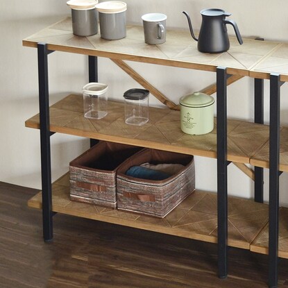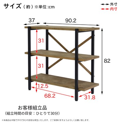 古木風天然木パイン 3段シェルフ(幅90cm)