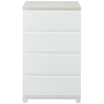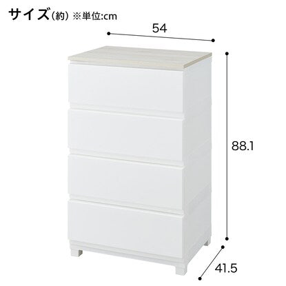 【耐荷重(約)】 天板:10kg 引出し1段あたり:3kg 【材質】 天板:プリント紙化粧繊維板 芯材:パーティクルボード、表裏:強化紙、エッジ:ポリ塩化ビニル 本体枠、側面パネル、引出し、フロントパネル、脚:ポリプロピレン クッションシール:ウレタンフォーム