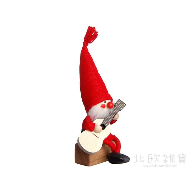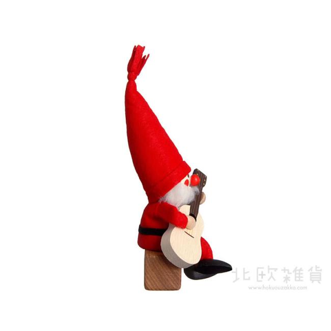 クリスマス 木製人形 ギターを持ったサンタ レッド