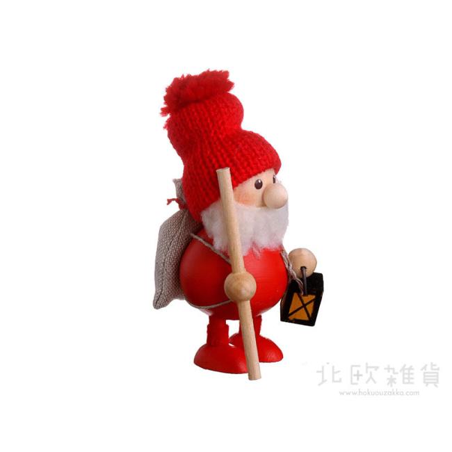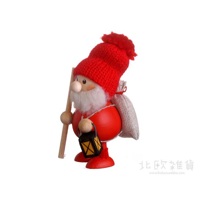 クリスマス 木製人形 ランタンを持ったふとっちょサンタ レッド