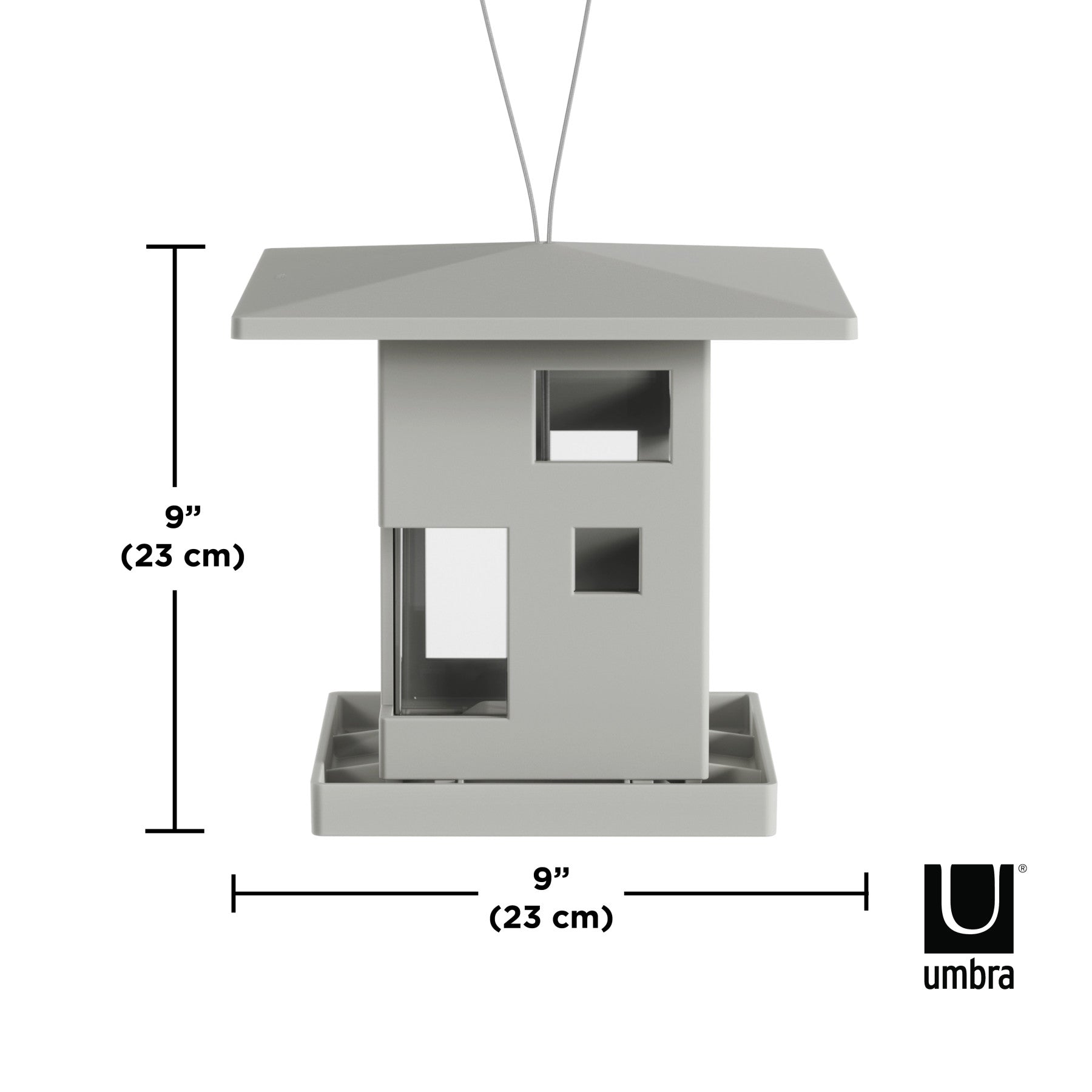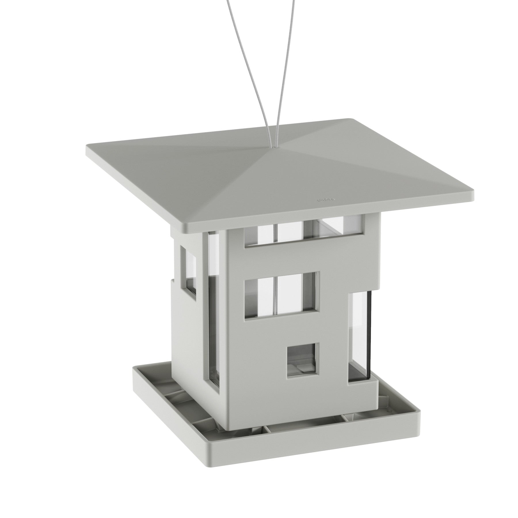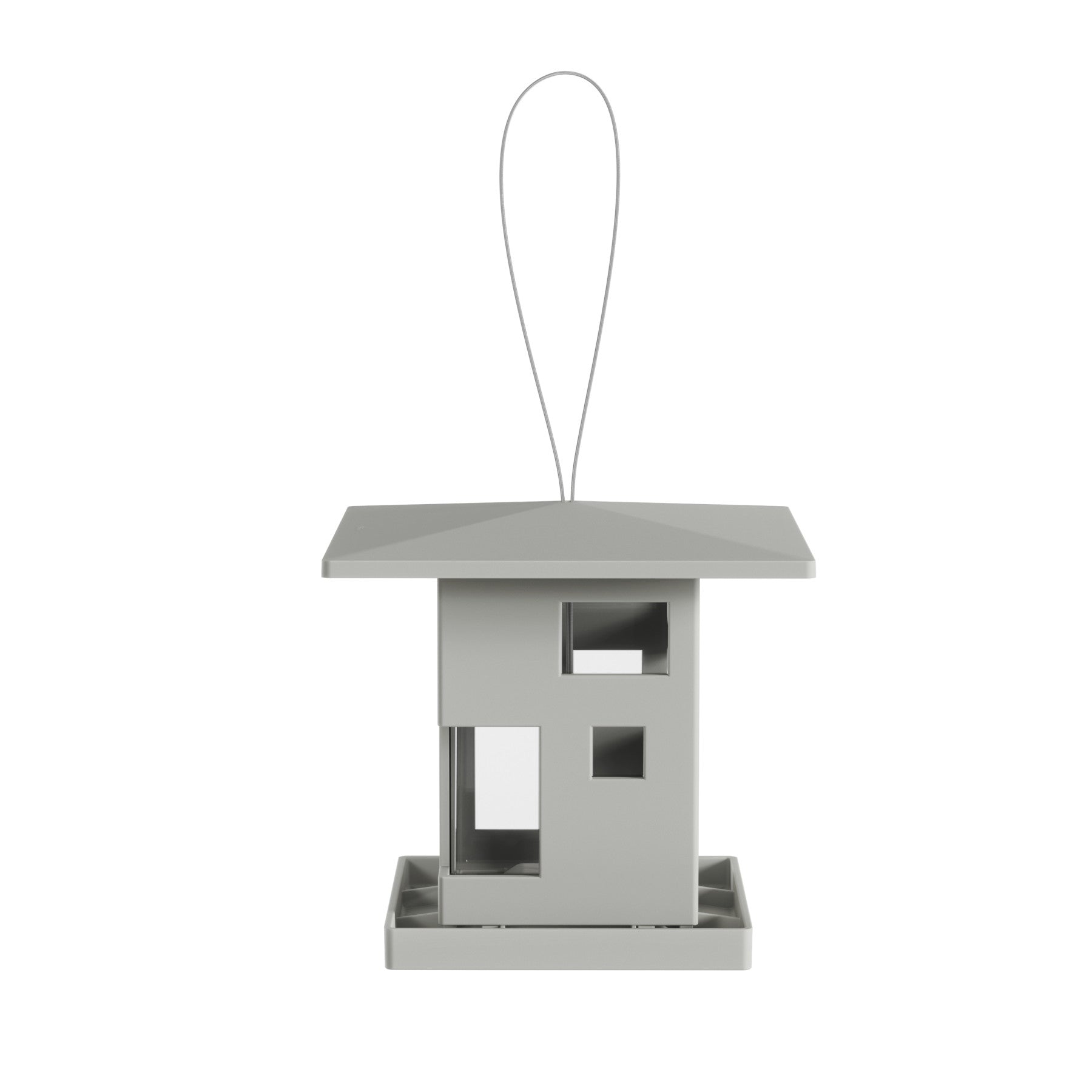 家の形をした鳥のエサ台です。窓から餌が少なくなっていることを簡単に確認する事ができます。足場があるので鳥や小動物が餌を食べやすい設計になっています。底の穴から餌が出て中の食べ物を取ることが出来ます。屋外でも使用できるようにスチールケーブルが付属しています。屋根の形をした上蓋を開いて、簡単に餌の補充ができます。内容量は約2Lです。また、屋根は張り出しのデザインになっているので雨しずくも下に落としやすく渇きも早いのが特徴です。