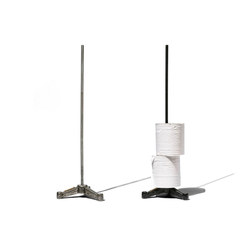 PUEBCO(プエブコ)のキャストアイアン(鋳鉄)製のトイレットペーパーホルダーです。 鋳鉄製で重量があるためバランスが良く、またコンパクトで場所を取らず、収納に困るトイレットペーパーをきれいにストックできます。 鉛直に伸びた棒は、3分割になっているため、2本だけを使って高さを低くすることも可能です。低くすることでキッチンペーパーなどにもお使いいただけます。 ヴィンテージのスタンドを思わせるプエブコらしいデザインと加工が、他にはあまりない雰囲気のペーパーホルダーです。