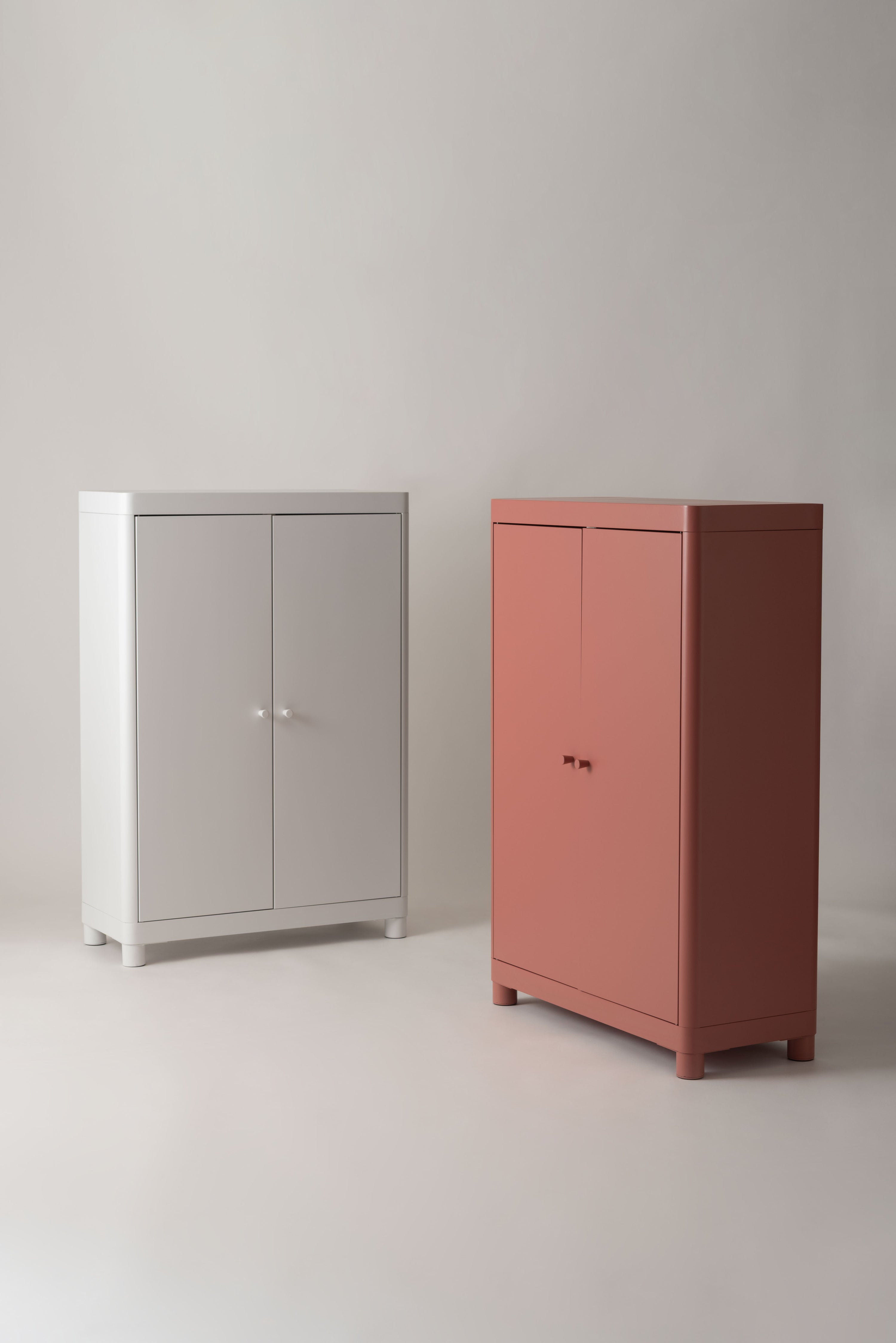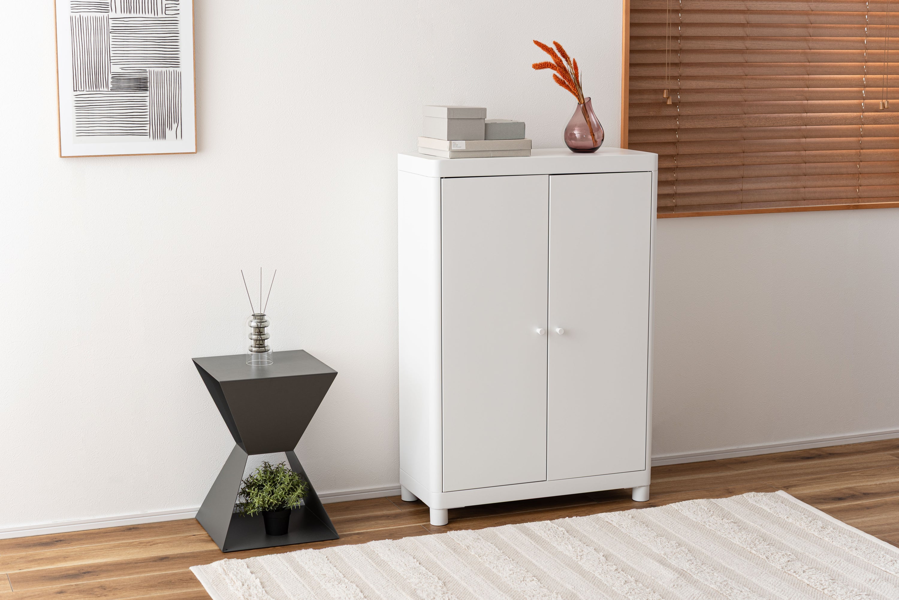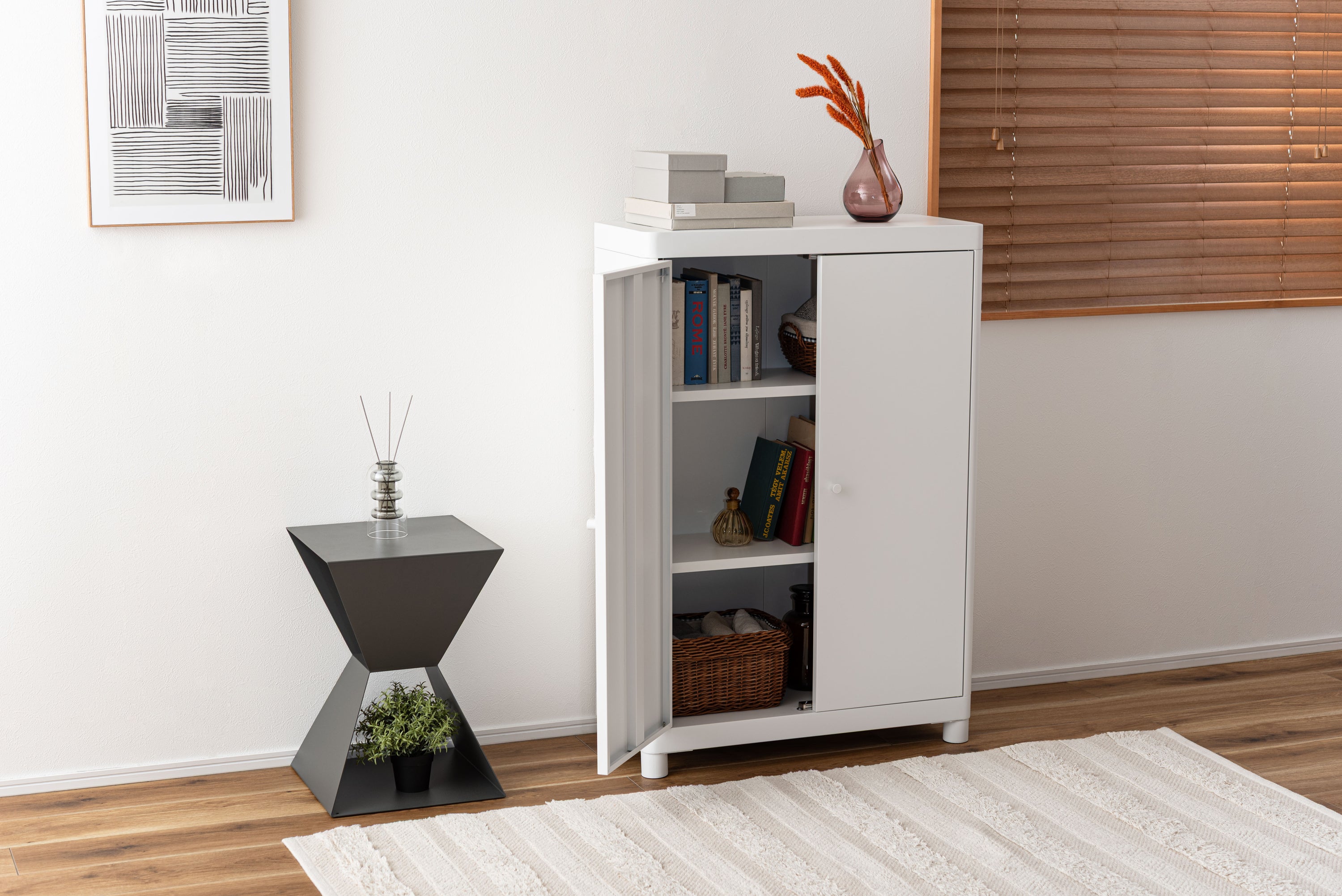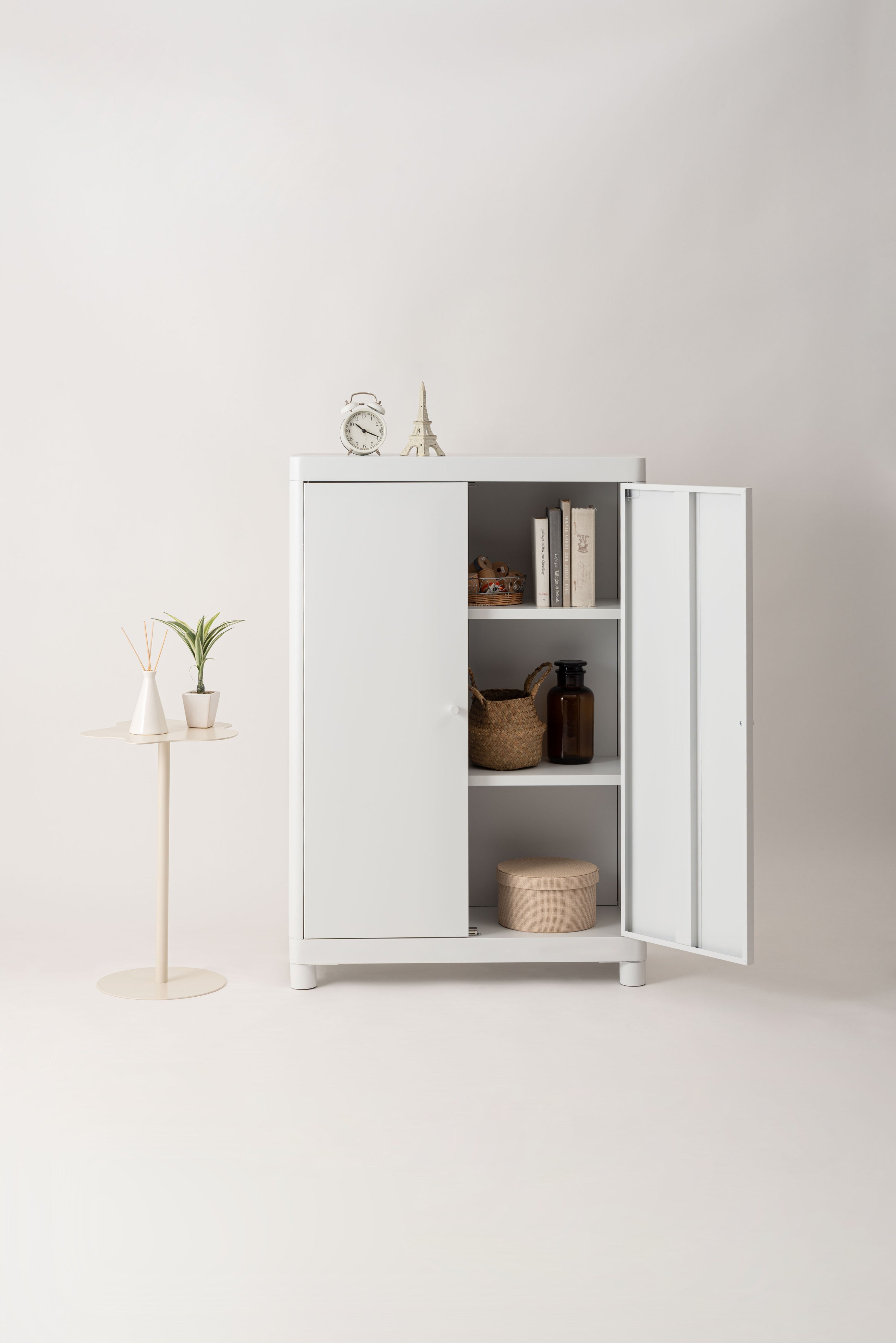 マットな質感と洗練されたシンプルデザイン。スチールを使用したシンプルでモダンなチェスト。マットな質感となめらかな曲線が美しく、空間に上品な印象を与えます。収納するものによって高さを変えることができる可動棚のため、スペースを活かして使用できます。マグネットキャッチを採用しているため、しっかりとドアを固定します。スチール素材のため磁石やマグネットクリップとの相性が良く、写真やメモを貼って使うこともできます。
