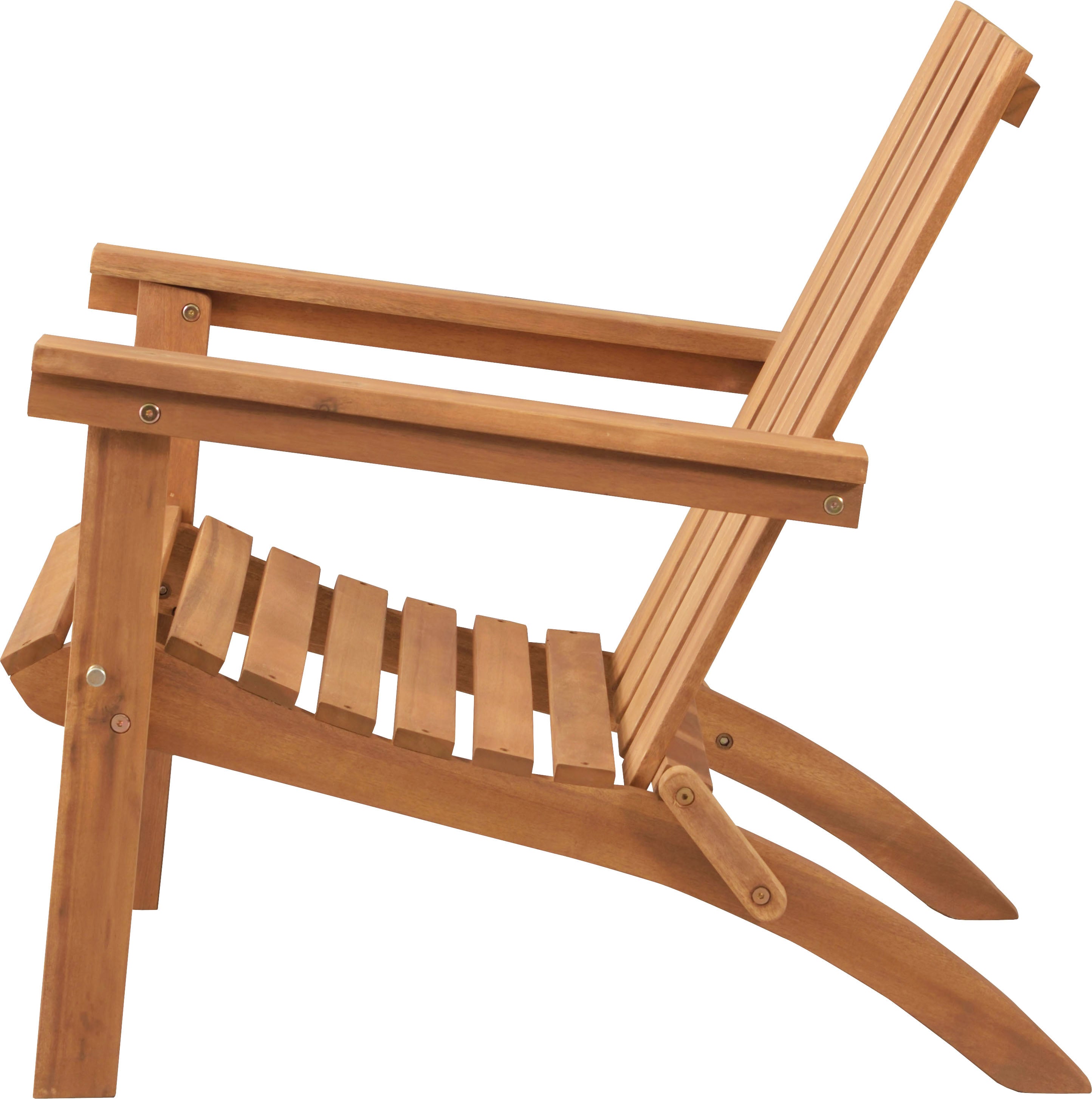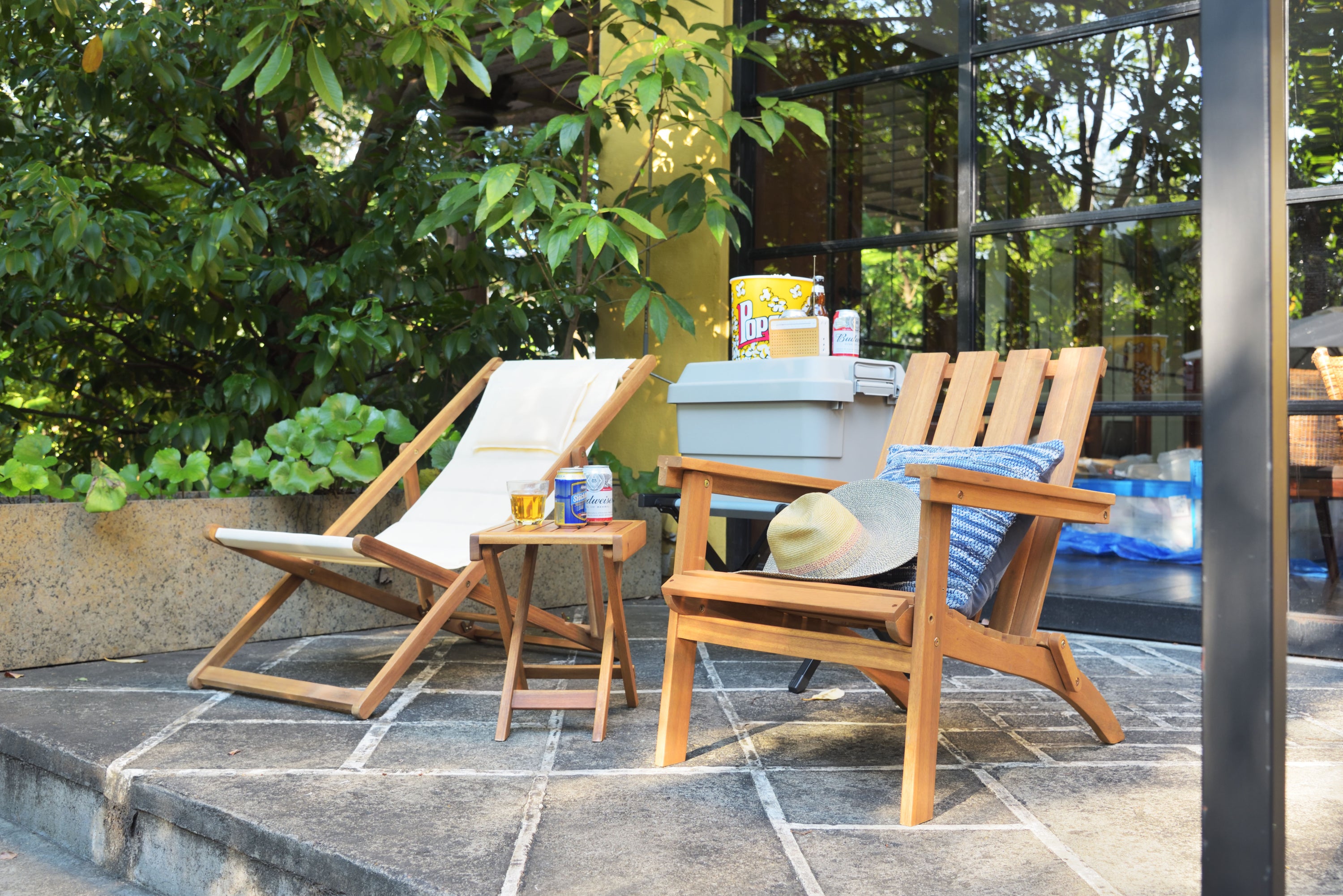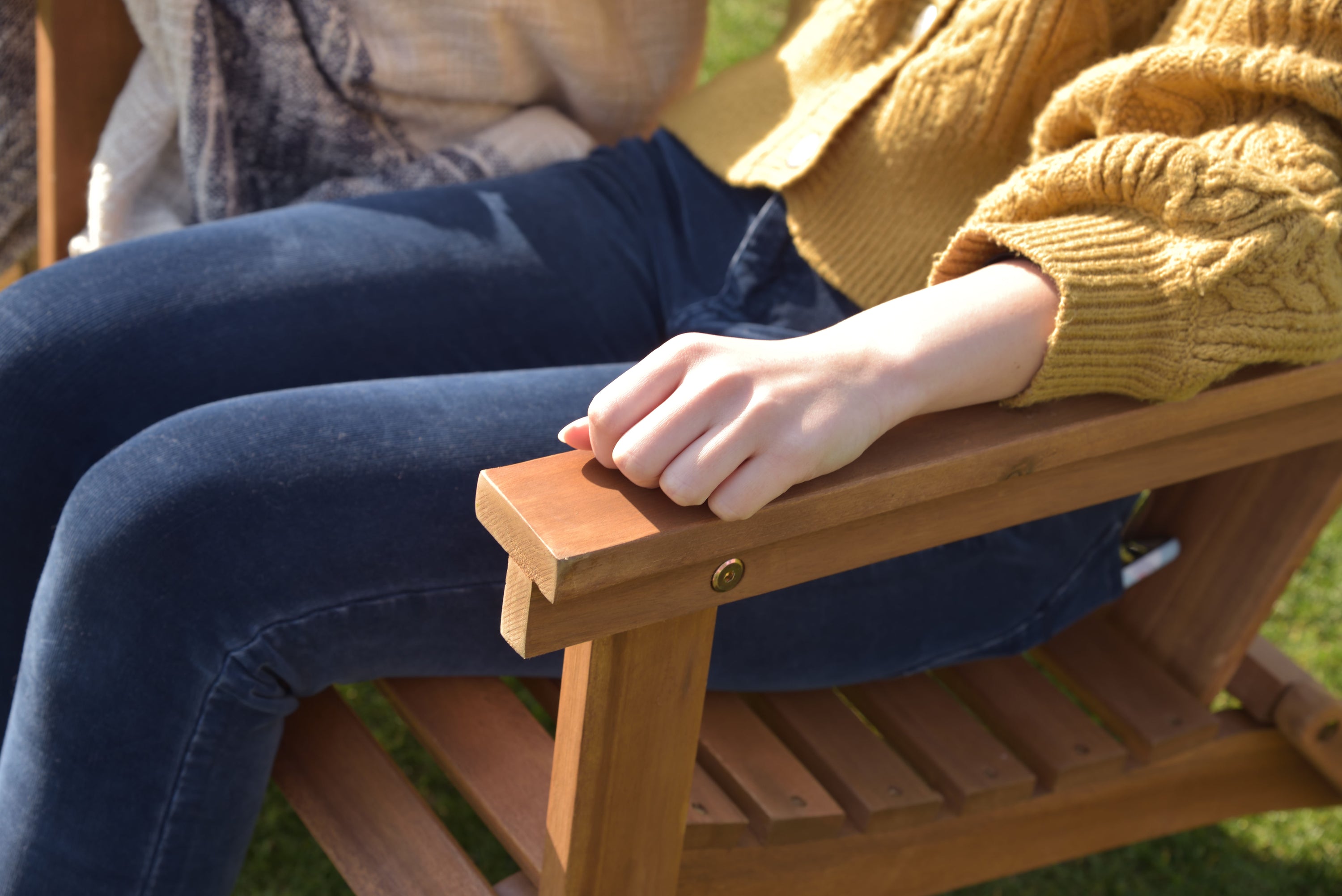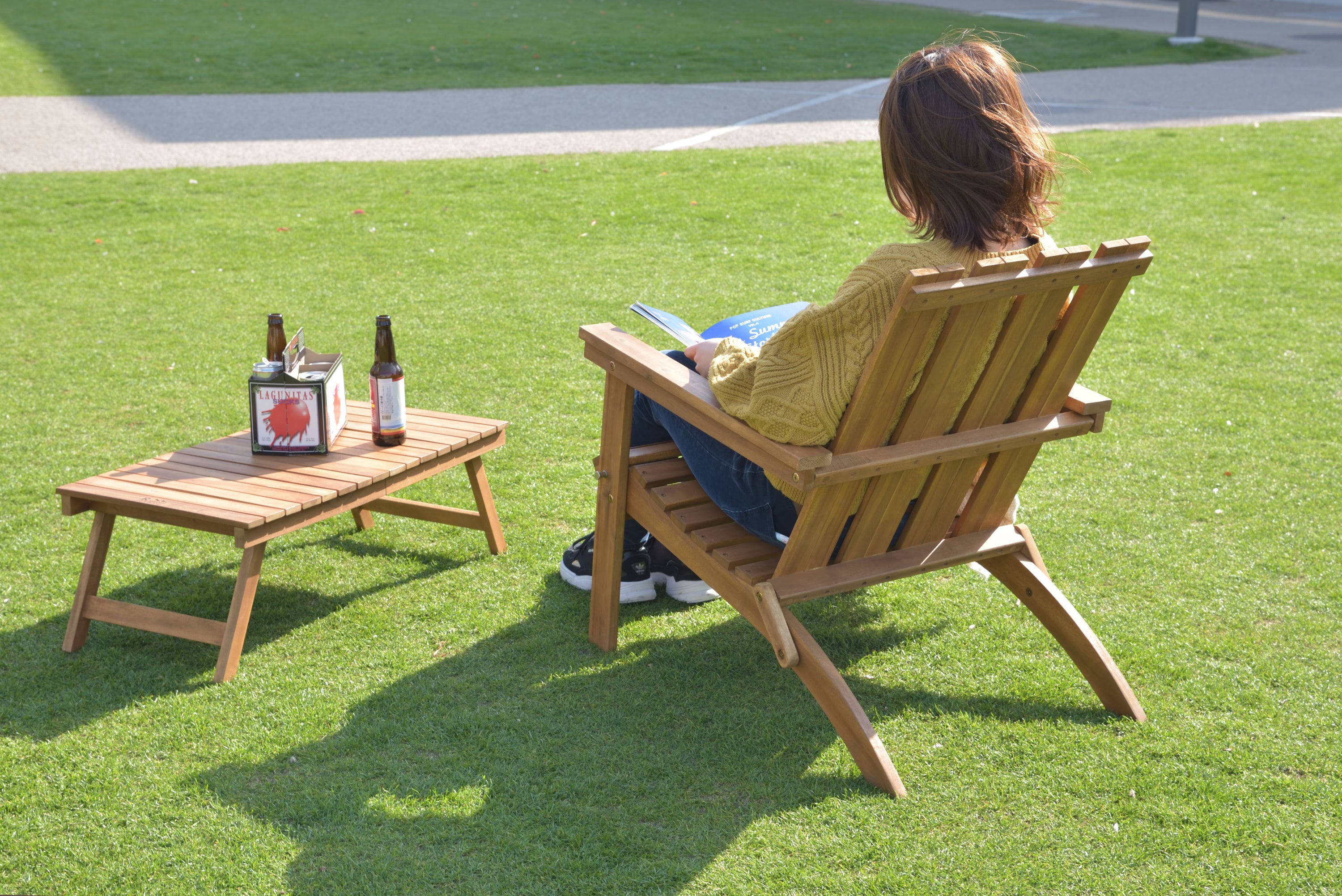 肘掛け付きでゆったりと座れる折りたたみチェア。 アカシアの木目が美しく、室内外問わずインテリアとして、折りたたみ可能なので持ち運んでキャンプ用としても最適です。
