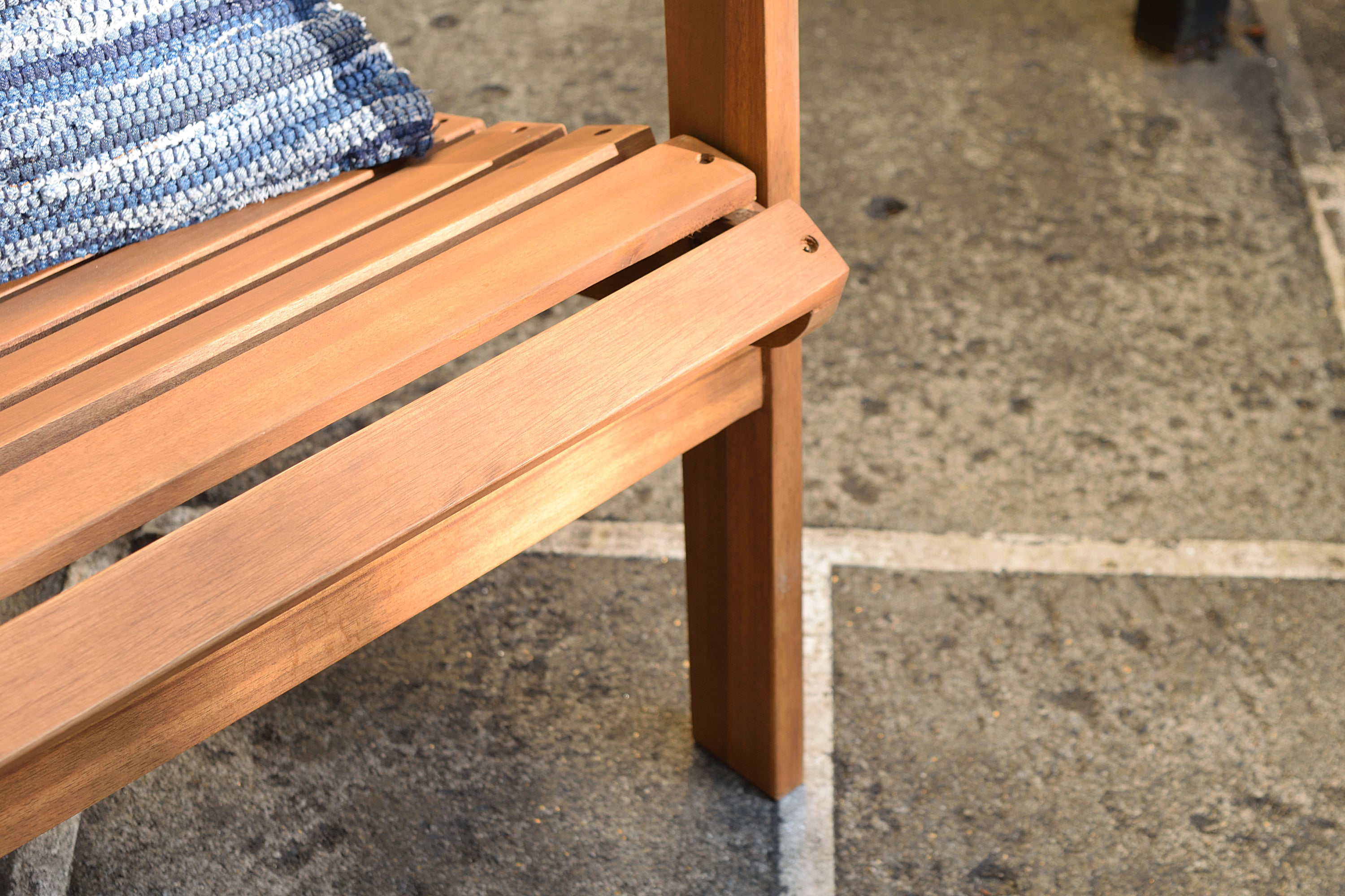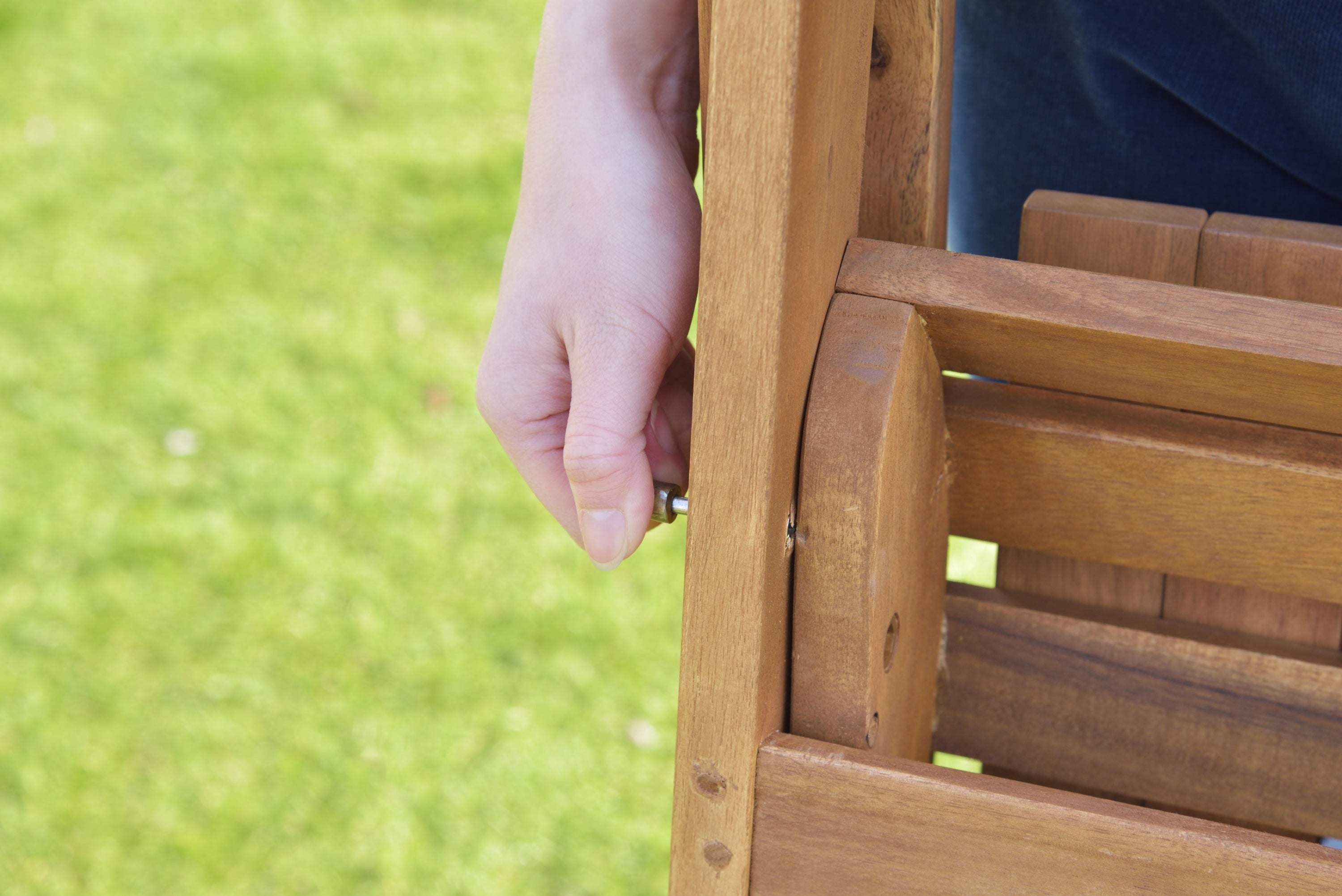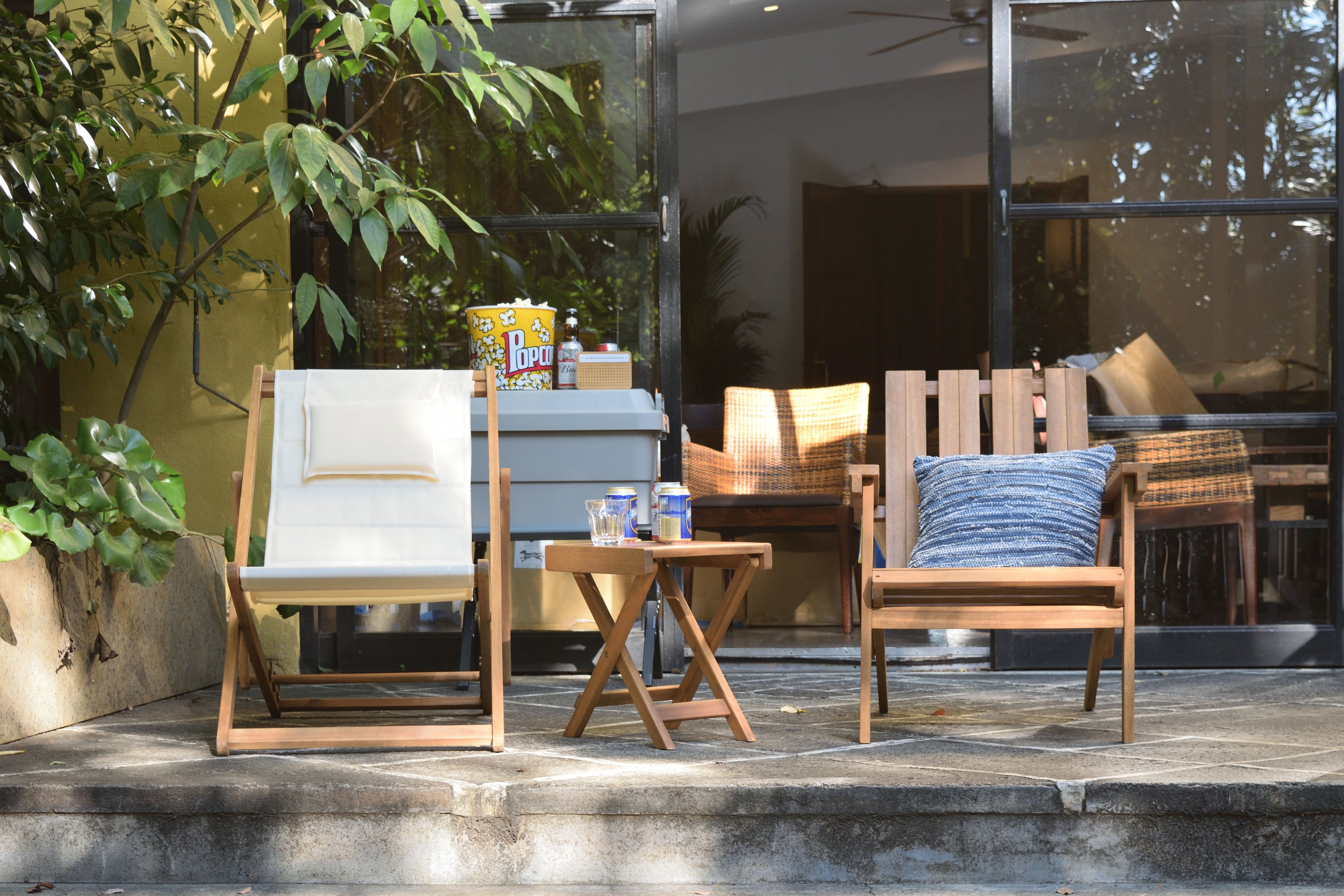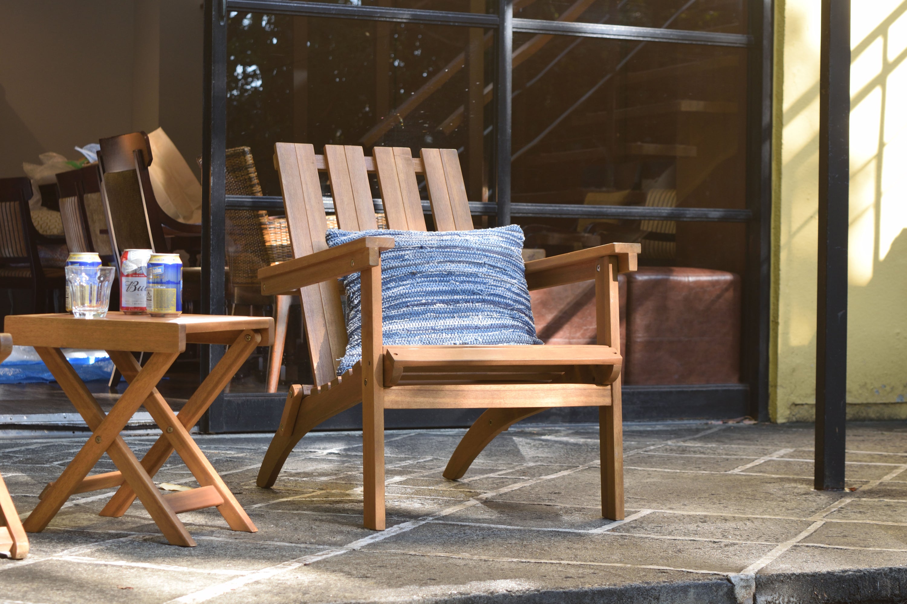 肘掛け付きでゆったりと座れる折りたたみチェア。 アカシアの木目が美しく、室内外問わずインテリアとして、折りたたみ可能なので持ち運んでキャンプ用としても最適です。