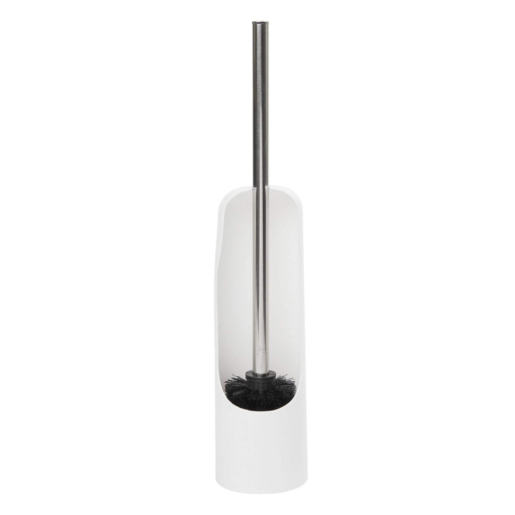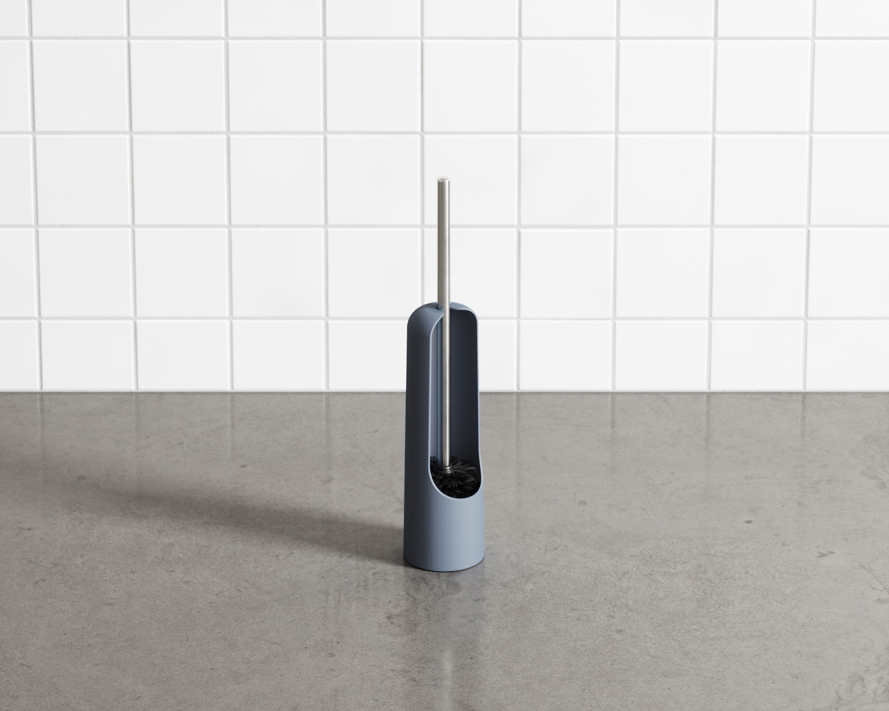 ラバーのような質感を持つ樹脂製ケース付きのトイレブラシ。ケースの背面が開いていて、ブラシを出し入れしやすく通気性も良いです。収納時はブラシが宙に浮く構造になっています。