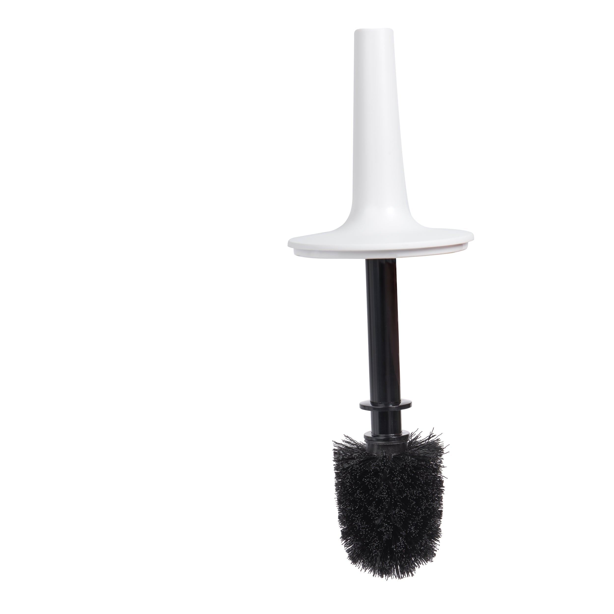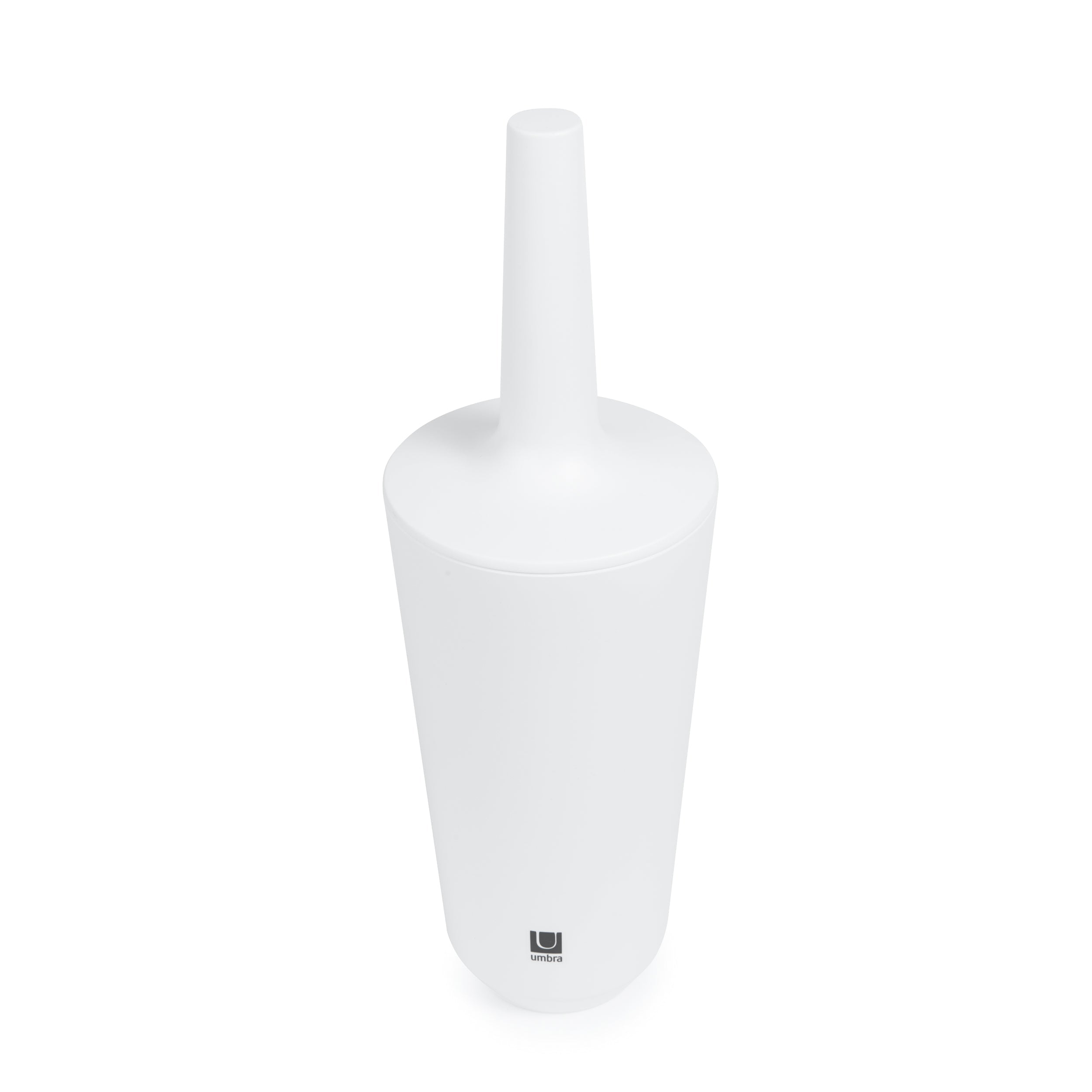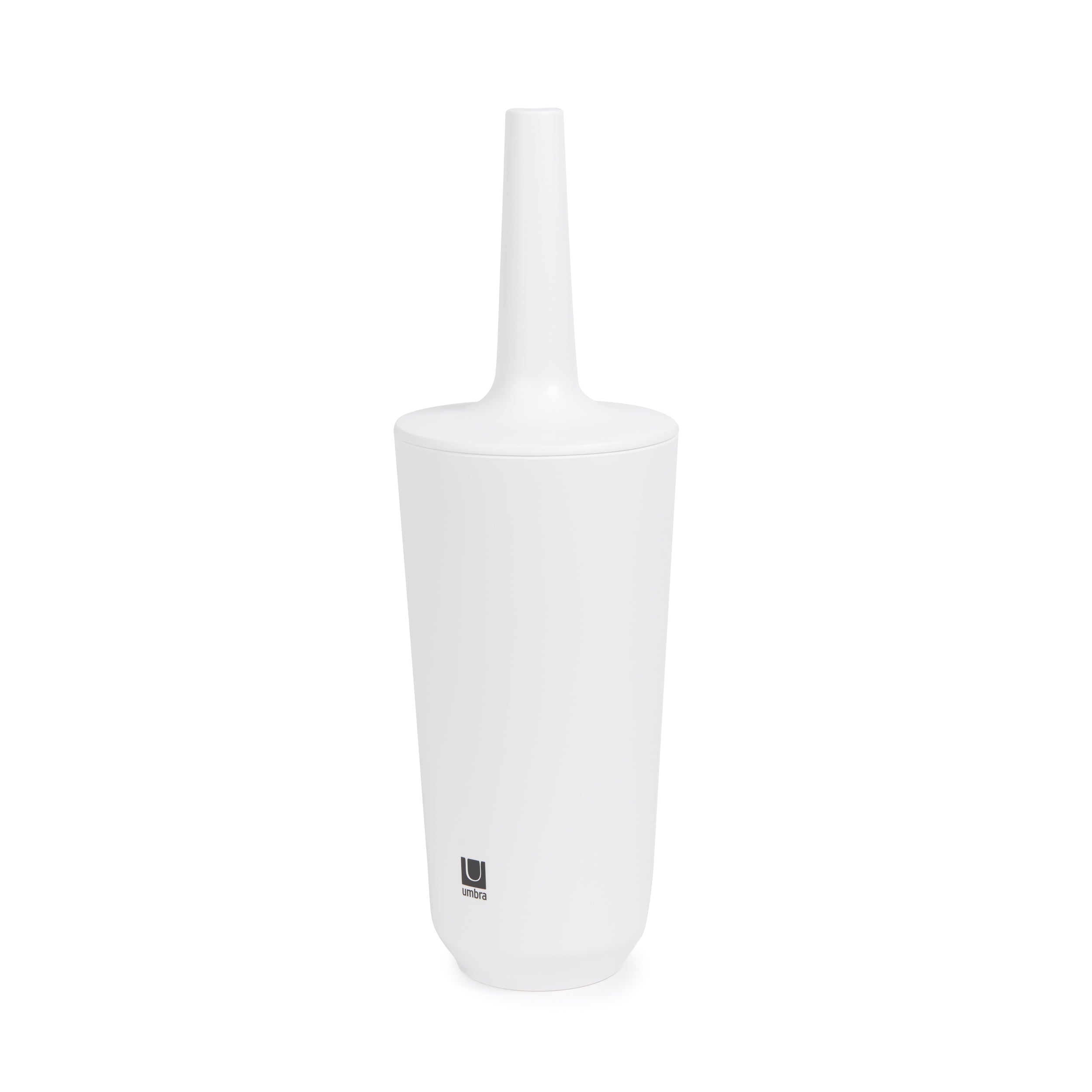 トイレブラシをすっきりと隠せるデザインが特徴です。ブラシを持ち上げるとホルダーのフタが開閉する構造で、フタはブラシのハンドル部分に一体化されています。耐久性に優れたメラミン素材を使用し、なめらかな曲線とマットな質感が特徴で、モダンかつ丈夫です。コンパクトサイズなので、省スペースのトイレ空間にすっきり収まります。
