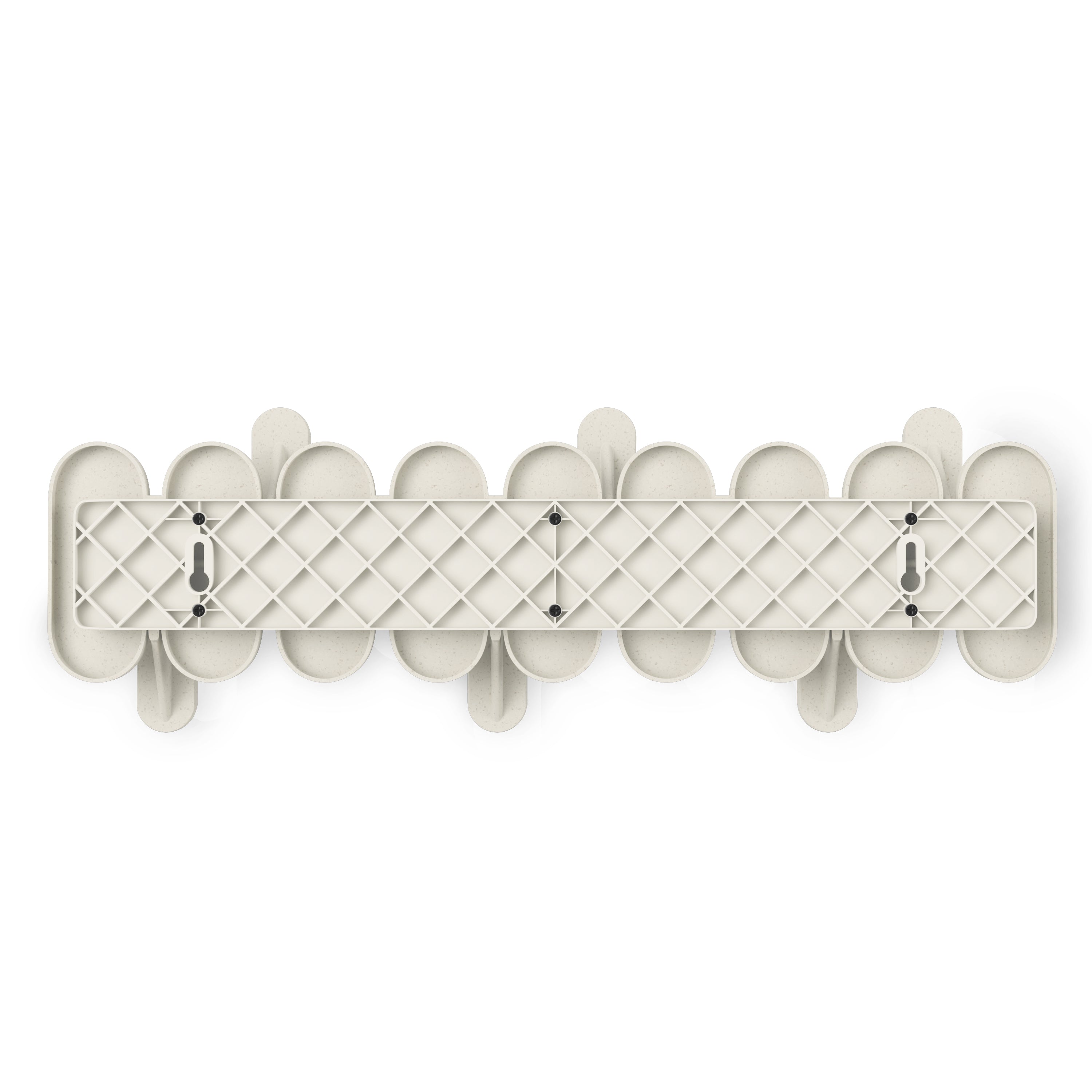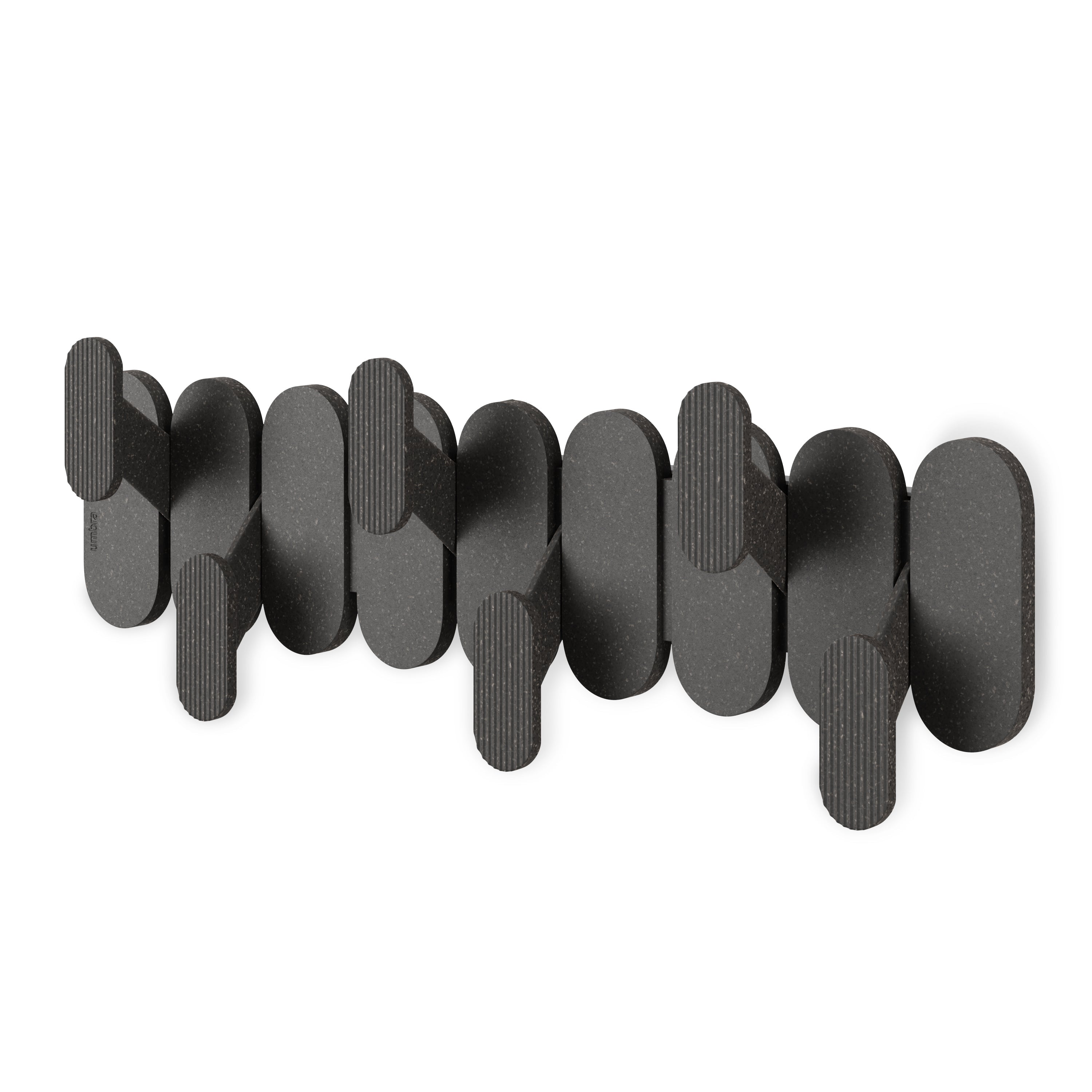 スタイリッシュなデザインと使いやすさを兼ね備えた壁掛けフック。6つの段違いフックで収納力がアップし、壁に置くだけでおしゃれなアクセントに。リサイクルプラスチックと木繊維を使用した、軽量で丈夫なエコ素材。玄関寝室バスルームオフィスなど幅広く使えます。1つのフックで約2.2kg、合計約13.6kgまで掛けられるので、コートやバッグ、タオル収納にも最適。