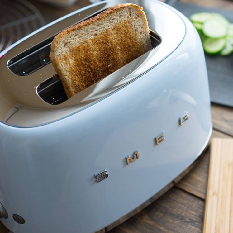 愛らしい姿からパンが焼けて飛び出してくるときは、なぜか笑顔になってしまいそうな魅力あるトースターです。均一に焼き上げるためパンは自動で中央にセットされ、焼き上がるとスライスがポップアップします。外はカリッと、中はふんわりと美味しく焼き上げます。