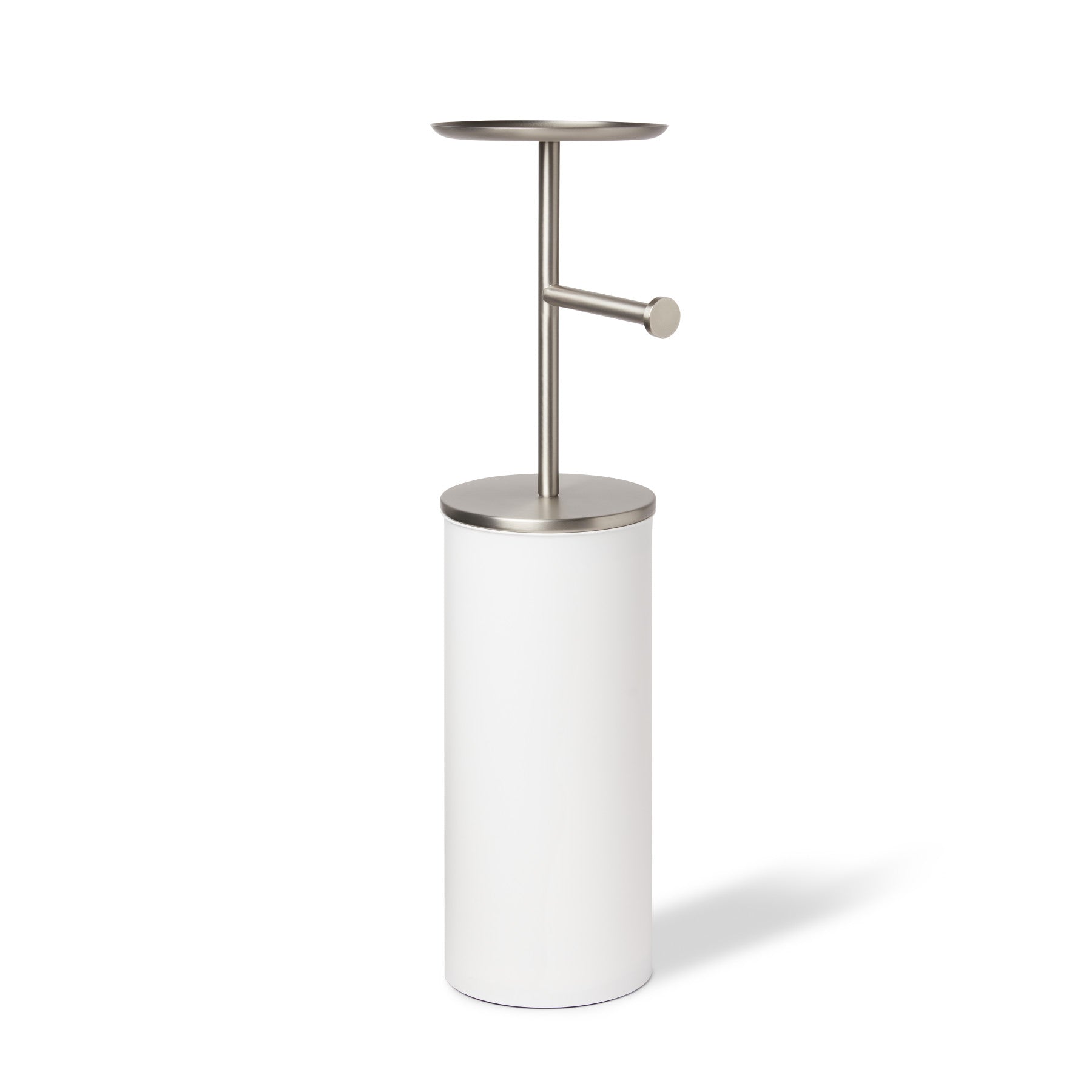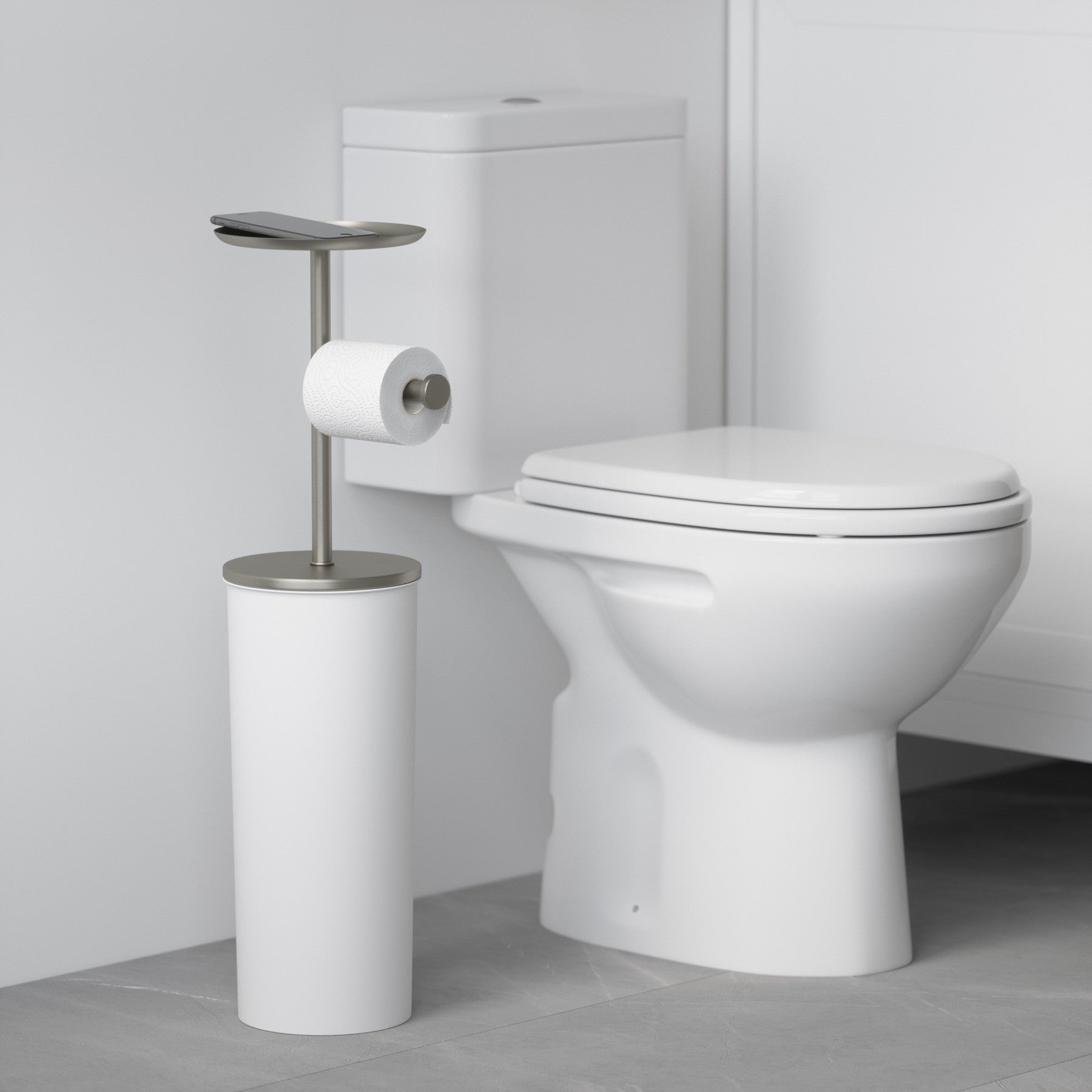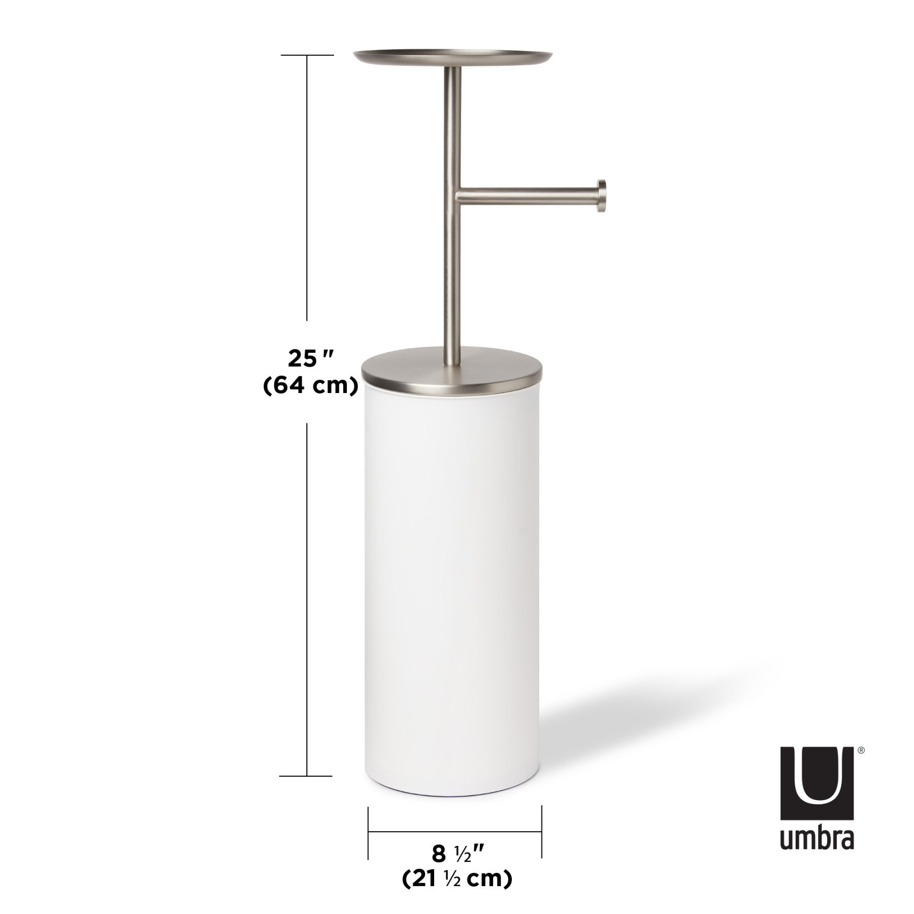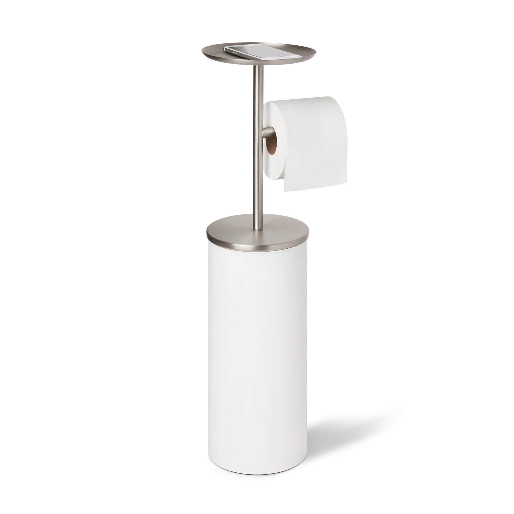 光沢のあるクロームとマットなボディのモダンなトイレットペーパースタンドは、シンプルでありながら多機能です。携帯電話、キー、植物、芳香剤などを置ける便利なトレイを備えています。予備のトイレットペーパーを最大3個、ボディの中に保管しておくことができます。コンパクトサイズのなので、小さなスペースに最適です。Umbraからポータル― トイレットペーパースタンドの紹介自立式で移動が簡単なポータル― トイレットペーパースタンドは、多機能でモダンなトイレットペーパースタンドです。上部には携帯電話やアクセサリー、芳香剤などが置ける便利なトレイがあり、とても便利です。また、予備のトイレットペーパーを最大3個、ボディの中に保管しておくことができます。光沢のあるクロームとマットなボディはシンプルで、清潔感があります。