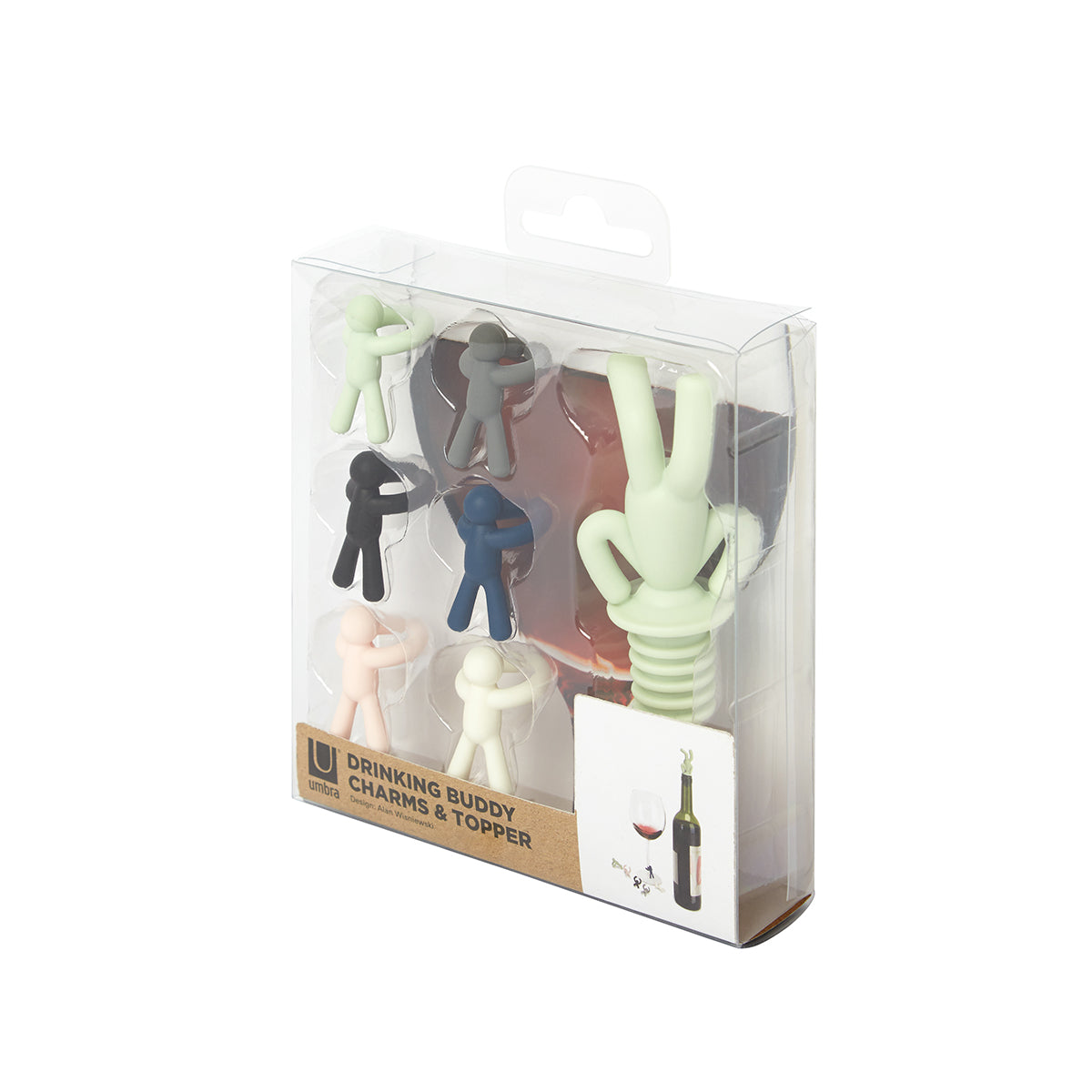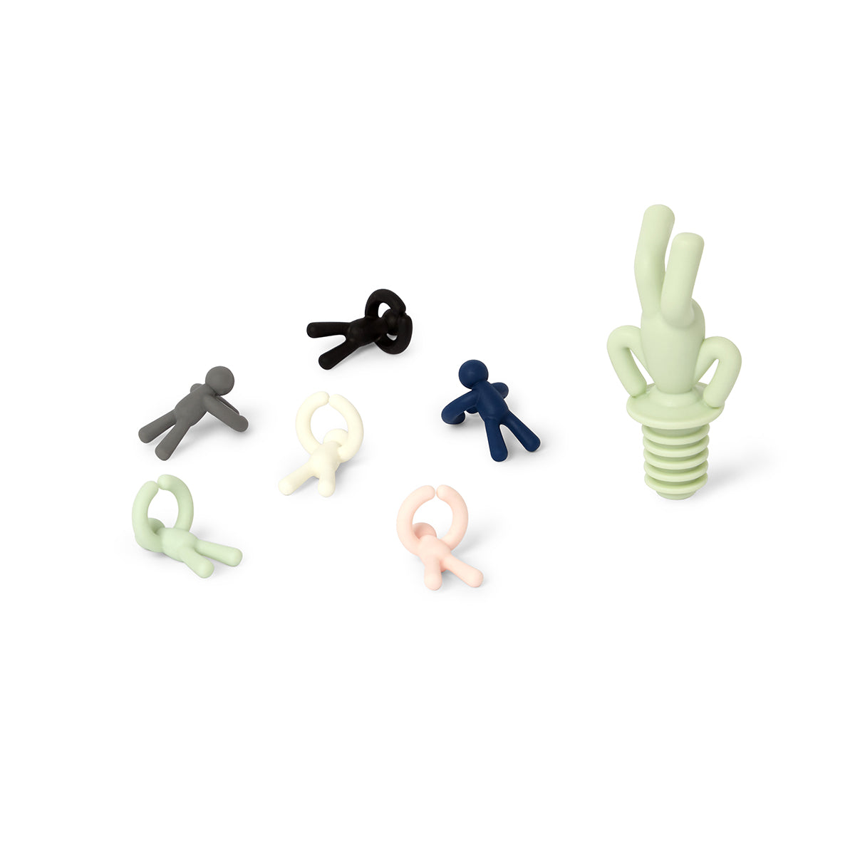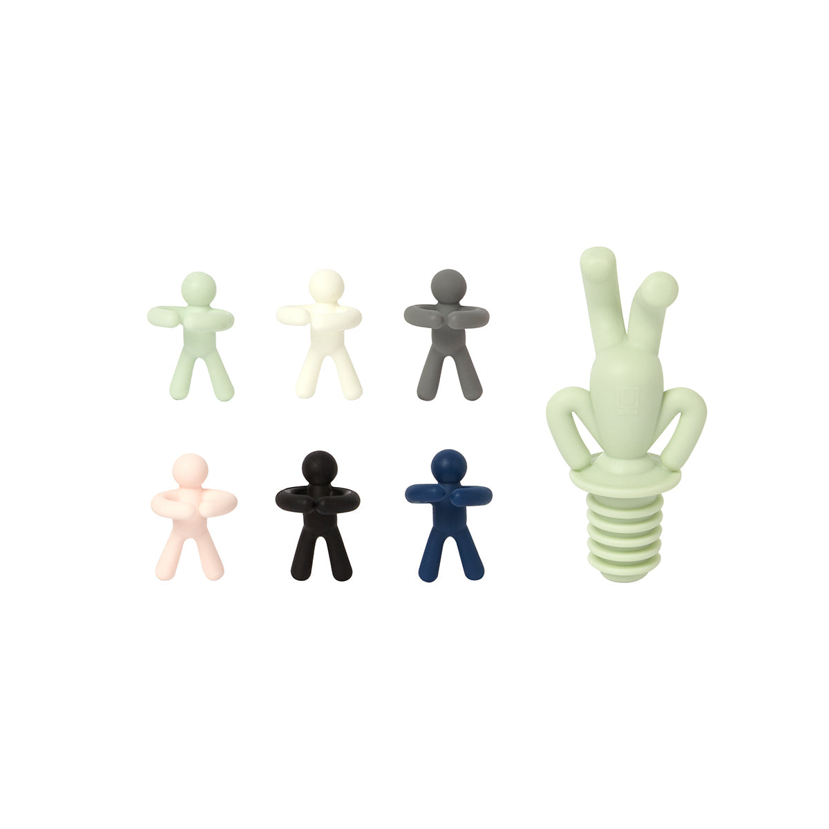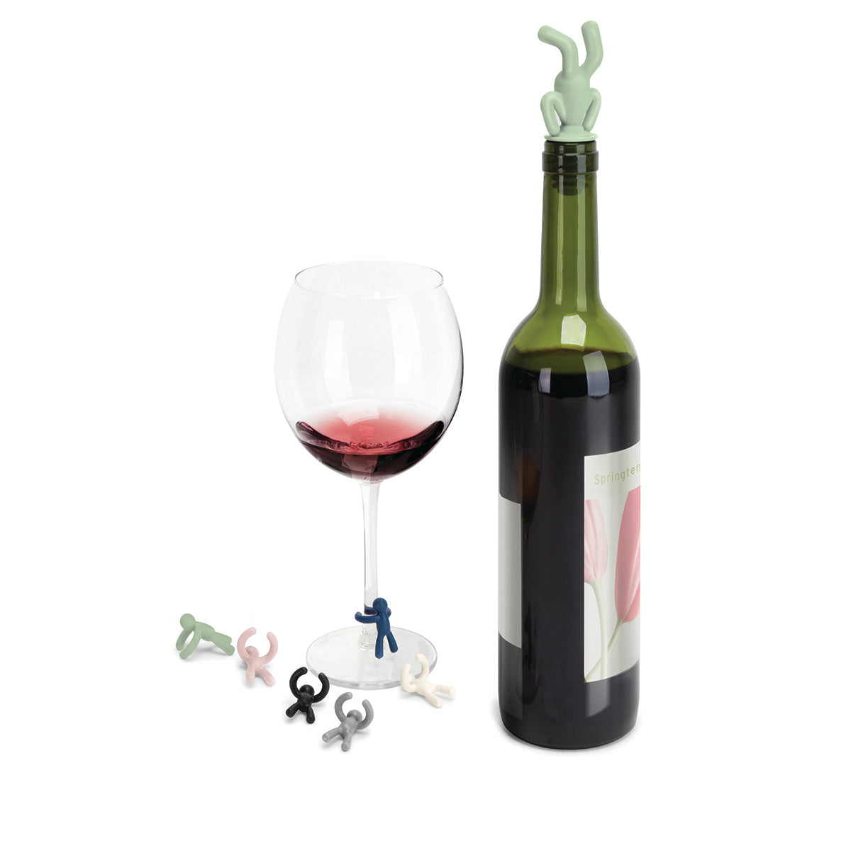 ホームパーティーで沢山のグラスがあるとどれが自分のかがわからなくなってしまった経験ありませんか。6色のBUDDYがグラスにしがみついて目印になってくれるユニークなデザインと、頭からすっぽりとハマってしまうデザインがなんとも愛らしいストッパーは、飲みかけのワインの酸化を防ぎ美味しさを保ってくれます。