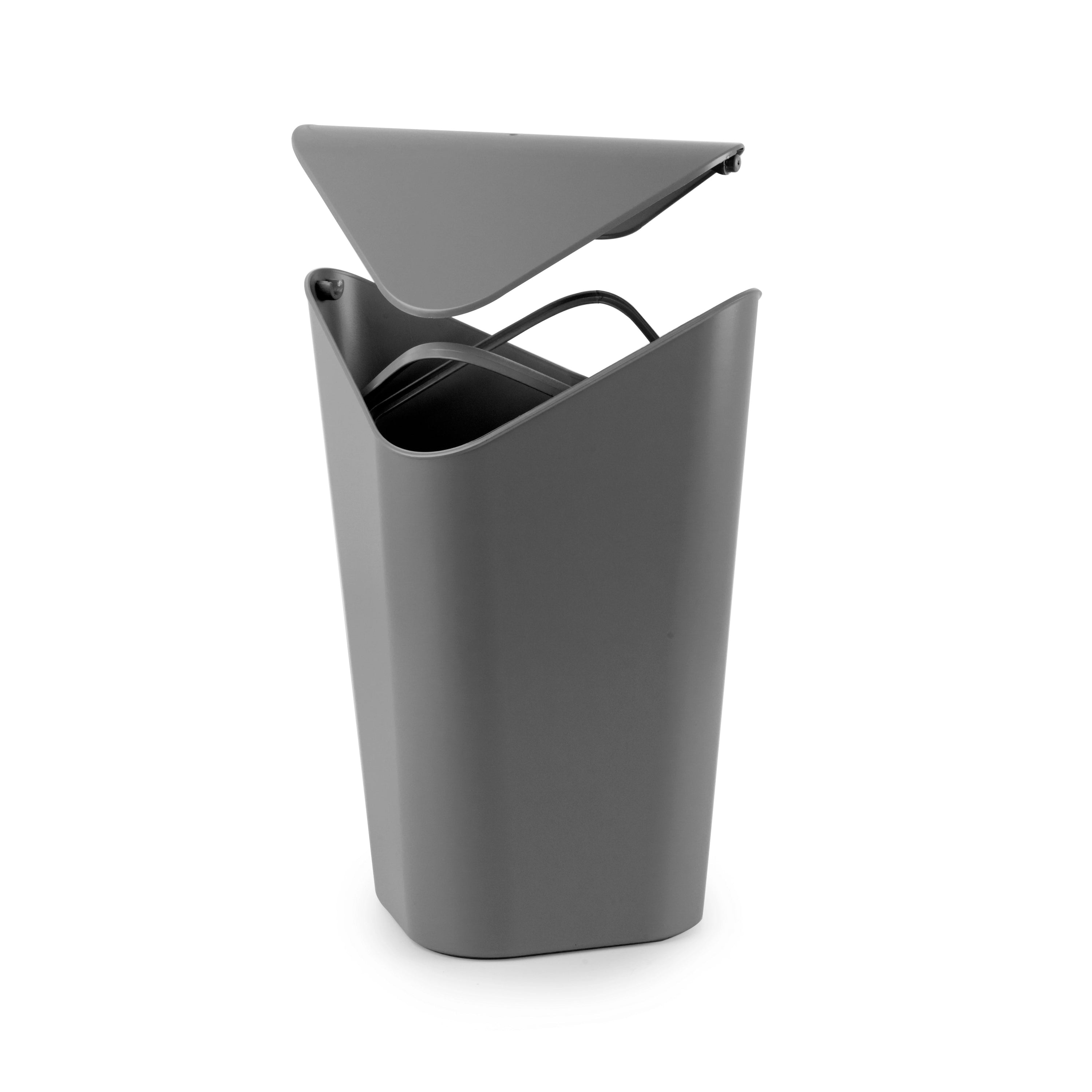 コーナーカンという名のとおり角にぴったりと収まるふたがスイングタイプのゴミ箱です。お部屋の角にすっきりと収めることができるので、ダストカンの存在が気にならず、お部屋の雰囲気を損ないません。また、ゴミ袋を付属の袋止め具で内部に設置できる仕組みになっているので、外からゴミ袋が見えません。