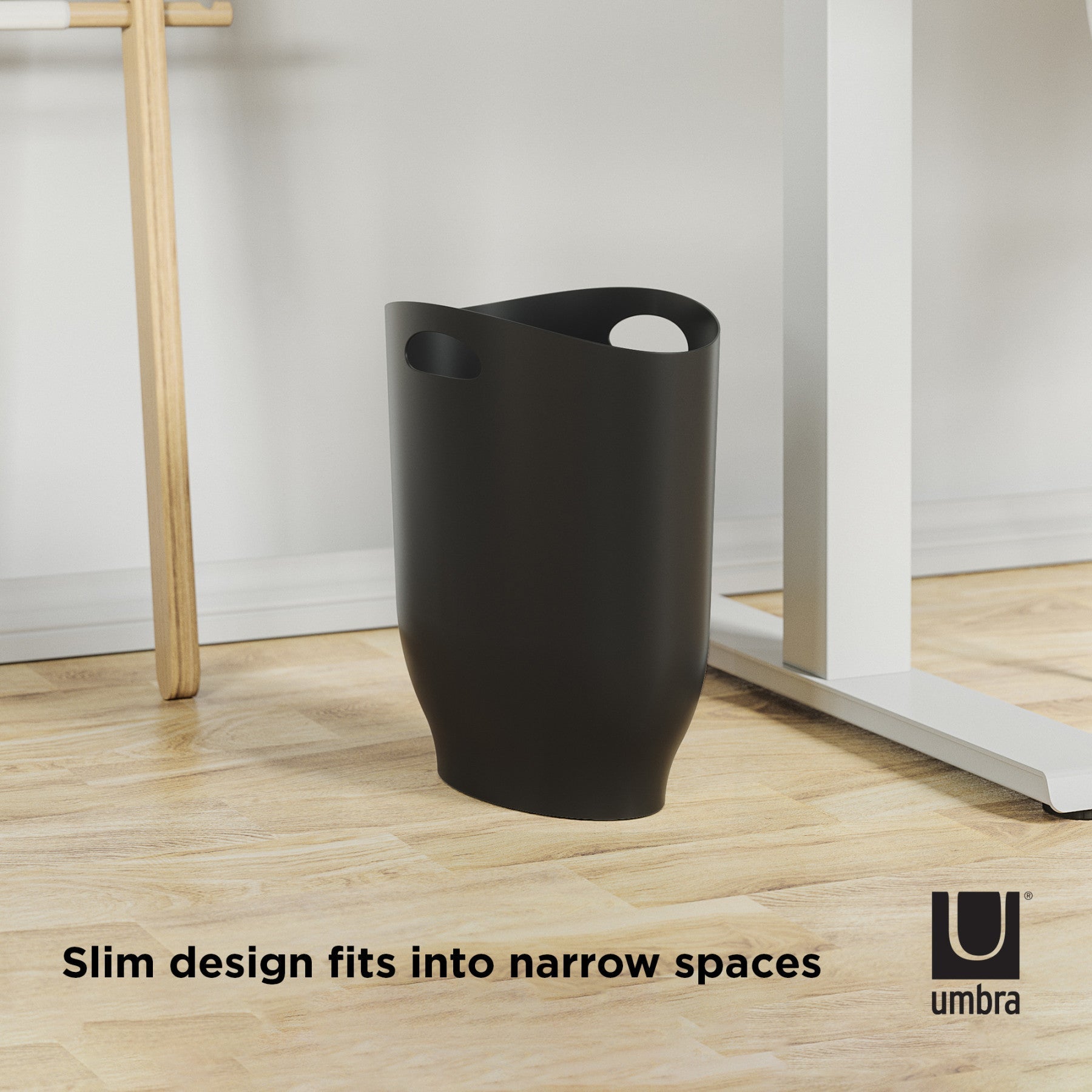 持ち手付きのスリムなゴミ箱です。スリムな形状のおかげで、洗面台の下やトイレの横、机の下など、狭いスペースにもきちんと収まります。容量は9リットルとスリムながらに充分な容量があるので、ゴミ捨てに行く頻度も抑えられます。持ち手がついているので、持ち運びがとても楽です。カラーバリエーションも多く、様々な場所に適したカラーをお選びいただけます。Umbraのスキニーカンとガルビノカンからインスピレーションを受けて作られた新しいデザインです。耐久性のある素材でできており、汚れた時には濡れ布巾で簡単にふき取れ、お手入れに手間がかかりません。