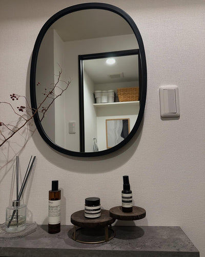 ハブ ミラー オーバル 46×61cm ブラック