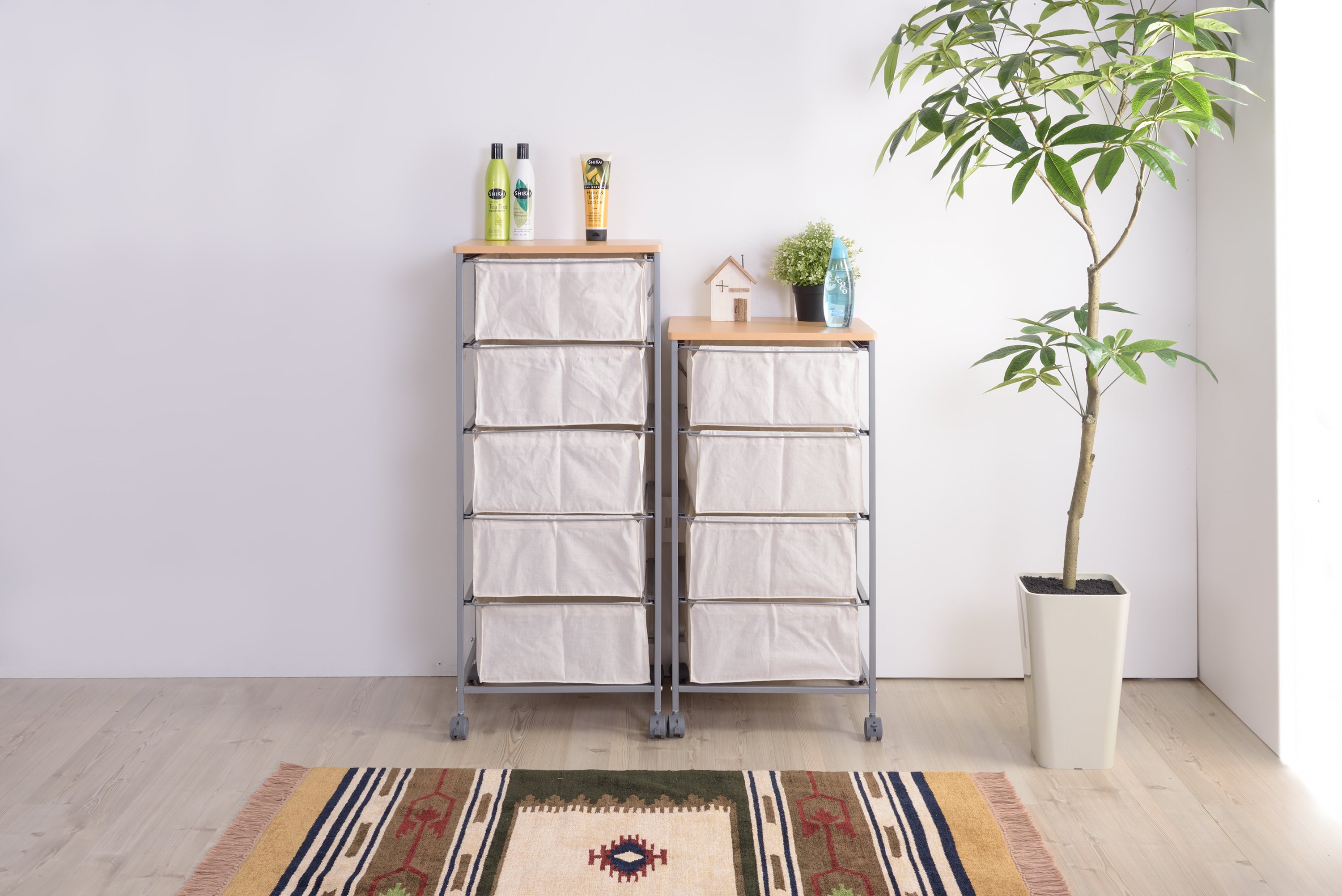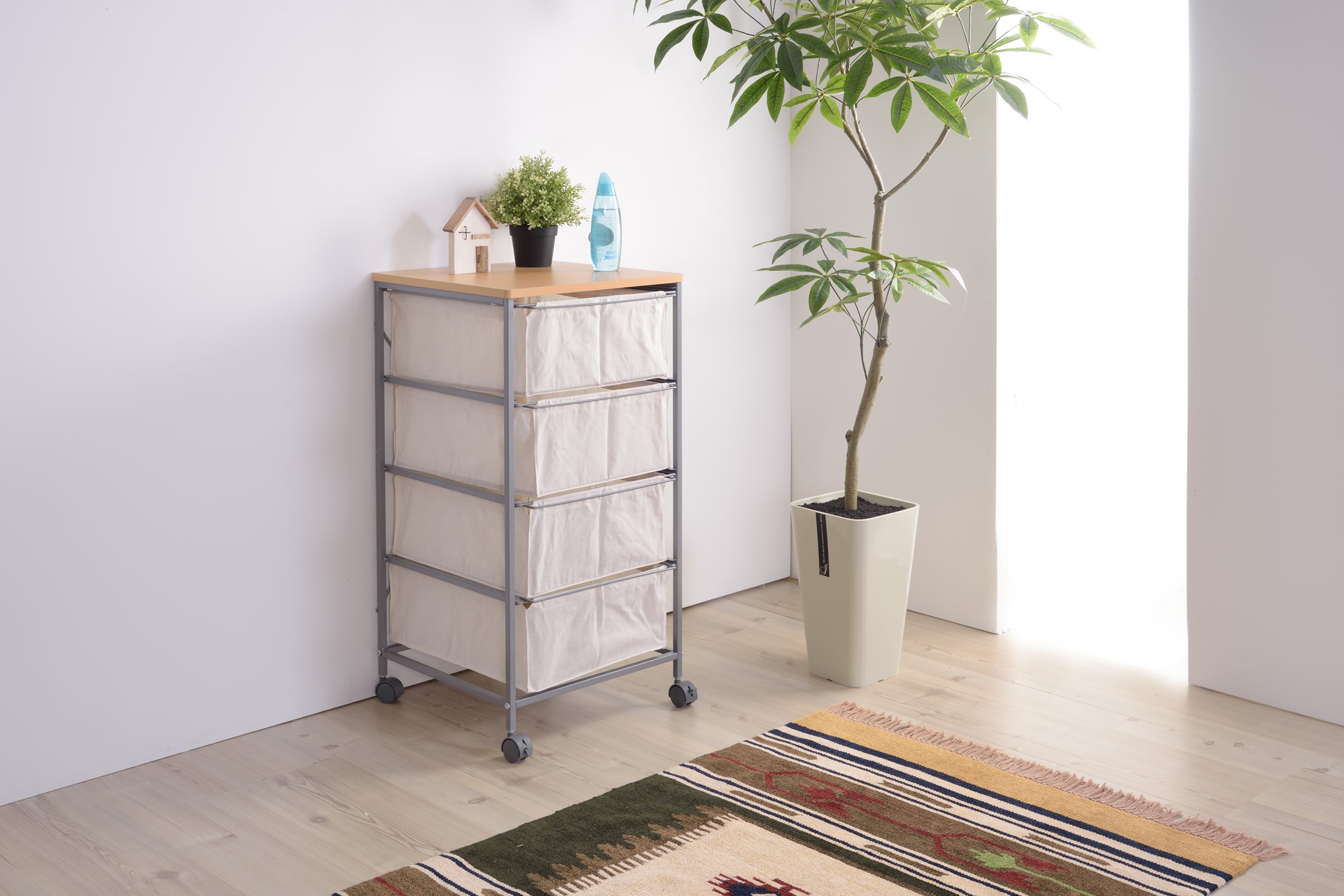 シンプルデザインのキャンバスチェストナチュラルな雰囲気が空間になじむ、キャンバスチェスト。脚部にはキャスターが付いているので、移動も簡単に行えます。すっきりとしたデザインが他のインテリアを引き立て、様々なシーンで活躍します。