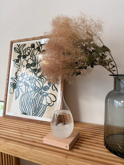This storm glass "Tempo Drop" transforms into various expressions depending on the weather. It's crafted in "Dawn/Gray," evoking the dawn of dawn. The beautiful, thin, teardrop-shaped glass vessel contains liquids such as camphor and ethanol, which crystallize in various ways as the weather changes. For example, crystals tend to form more easily on cold days, while fewer crystals form on warmer days. Enjoy the daily changes as crystals of various shapes and sizes appear, as well as the appearance of sediment, clear liquids, and floating particles. Known as "storm glasses" (weather tubes), these were primarily used as weather forecasters during voyages in 19th-century Europe. They were believed to predict the weather and pinpoint the direction of thunderstorms. They're also famous for being installed aboard the Nautilus, featured in "Twenty Thousand Leagues Under the Sea." While the crystallization phenomenon remains mysterious and is still under investigation, its practical application as a weather forecaster is difficult today. However, the ever-changing crystals will pique your scientific curiosity and provide endless hours of enjoyment. The sophisticated teardrop-shaped design makes it a perfect interior decoration, and the beautiful gift box makes it a delightful gift. Source: https://www.truss.jp/