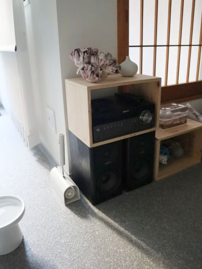 This carpet cleaner has a simple design that won't interfere with the atmosphere of your room. The case allows you to stand the main unit upright, so it can be stored in the gaps between things. It's a convenient cleaning product that you can quickly take out and put away. Source: https://www.muji.com