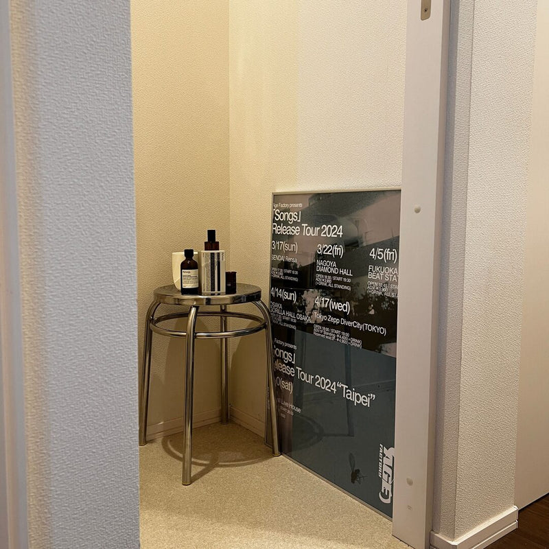 好きなバンドのポスターとシルバーのスツールでシンプルな空間🚽🪩