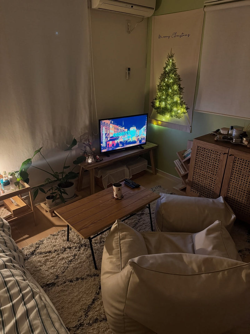 クリスマス仕様にしました🎄🤍 狭いお部屋にぴったりなタペストリーを購入🎄 LEDライトのおかげで華やかに‥💡 てっぺんが寂しいので星探さなきゃ🌟 1番のお気に入りはヨガサンタ🎅 シュールでかわいい🧘♀️🫶