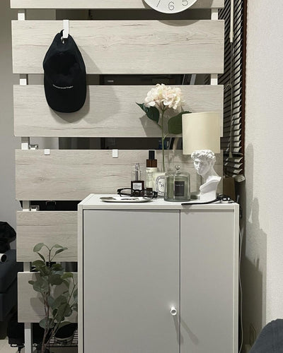 扉を開ければ見せる収納 閉めておけばすっきり洗練された雰囲気。