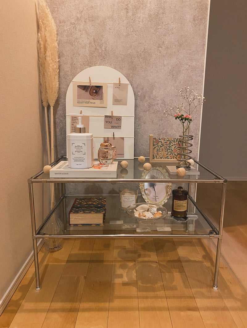 ステンレスモジュール家具 2段ソファテーブル S 水平調節脚付き