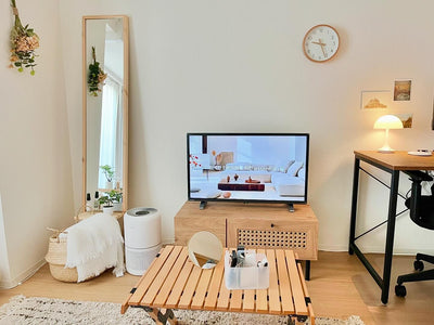 ここ、結構いいかも?🤔角度によってはお気に入りのシェルフがテレビ横にもう一個あるみたいでかわいい🥹🫶🏻