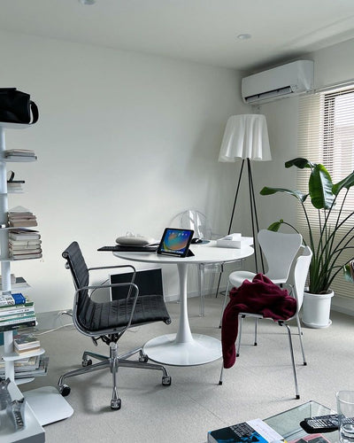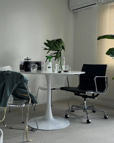 This round table uses an easy-to-clean MDF top. It has a soft luster that keeps it clean, and it is also water-resistant and stain-resistant. The 18mm thick top is sturdy. The stylish and simple design will fit in any room. Source: https://www.rakuten.co.jp/